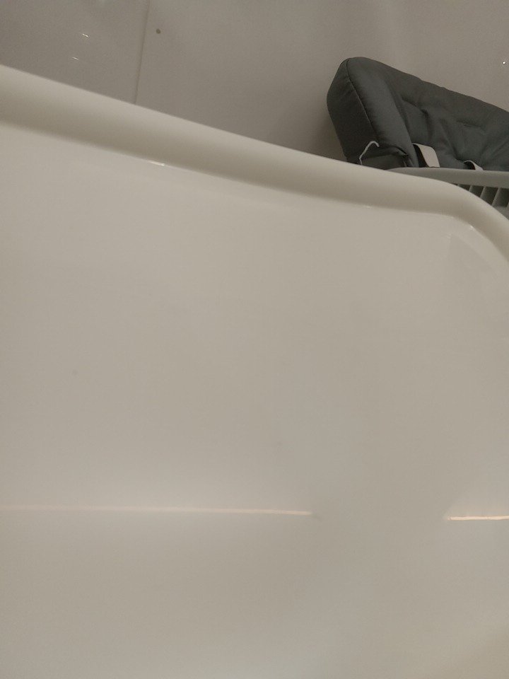 light dirt and smudges on the wheels, food tray of the item. please see photos