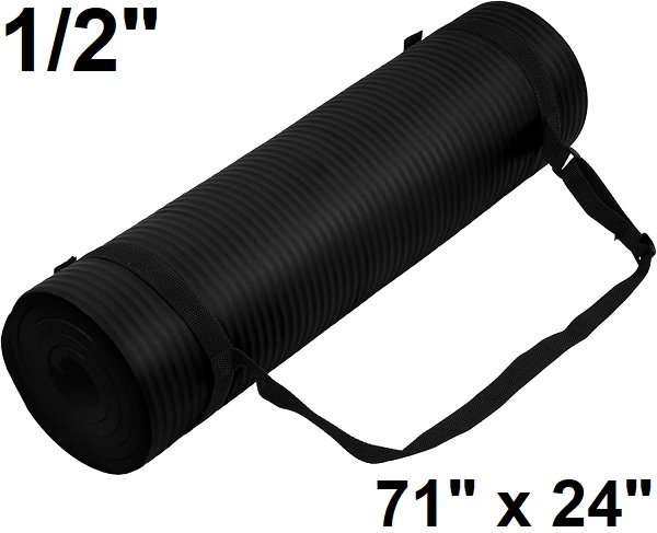 fitvids balanceform all-purpose extra thick high density anti-tear exercise yoga mat with carrying strap - 71'' x 24'' - 1/2'' - black (model: ‎ ‎BFGY-AP6BLK)