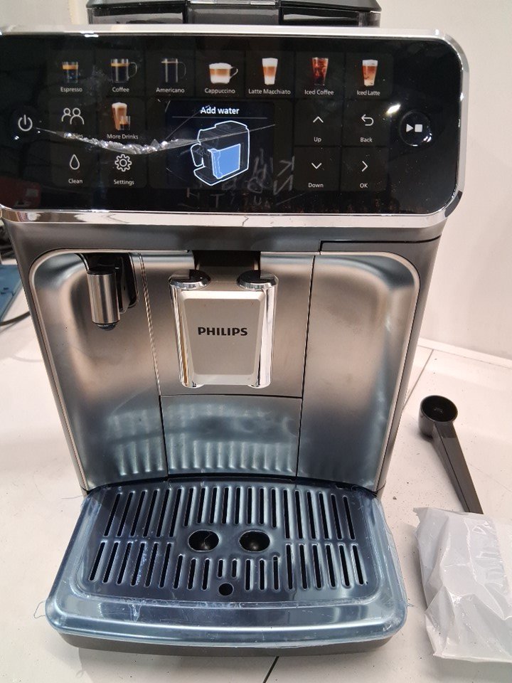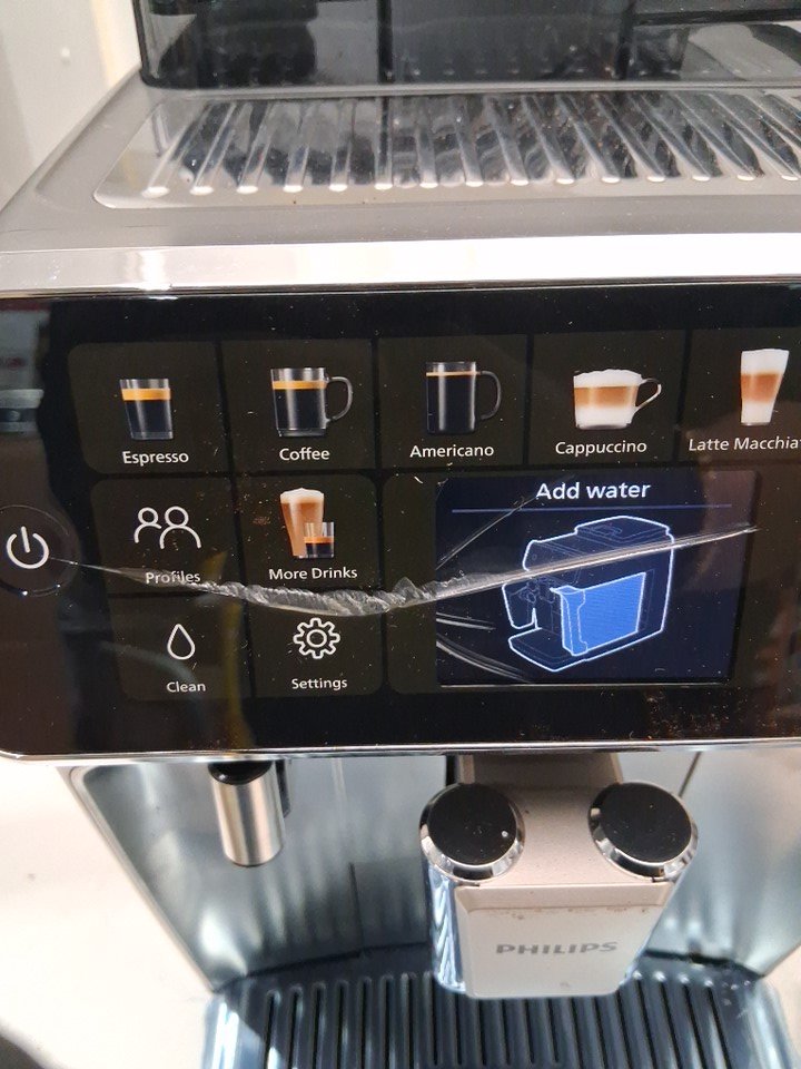 + Item has a large crack in the screen, appears to still function + + Item is missing the frother + + Missing floater + + Has residual coffee grounds inside of it + + Light scuffs and scratches + + Tested for basic power +