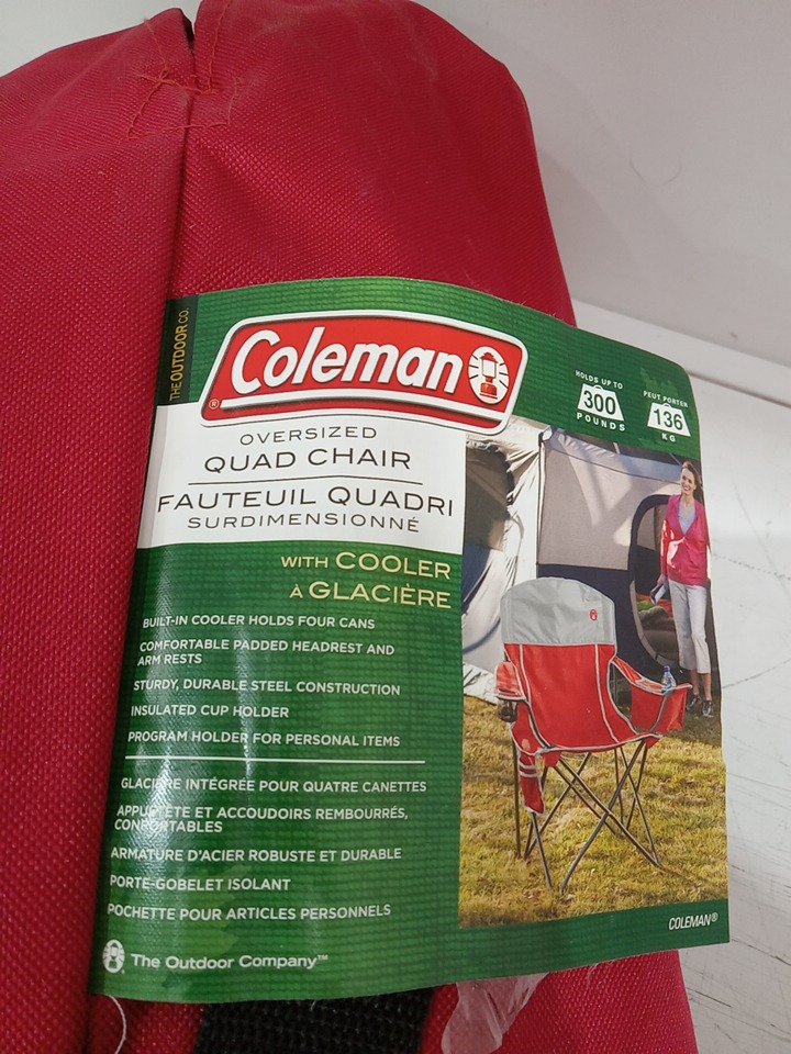COLEMAN OVERSIZED QUAD CHAIR WITH BUILT IN COOLER - 300LBS MAX - RED (MODEL: 2000013066)