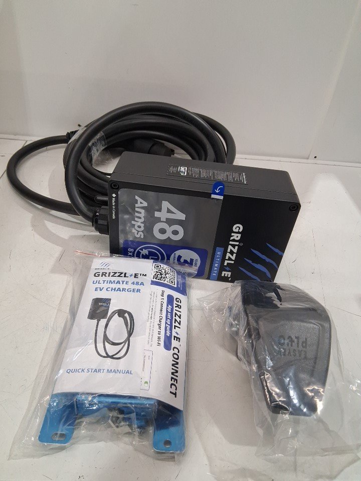 Grizzle-E Indoor/Outdoor Classic Level 2 Electric Vehicle (EV) Charger with Metal Case Enclosure, UL Certified - NEMA 6-50 PLUG- 240V - 40A - Black/Blue