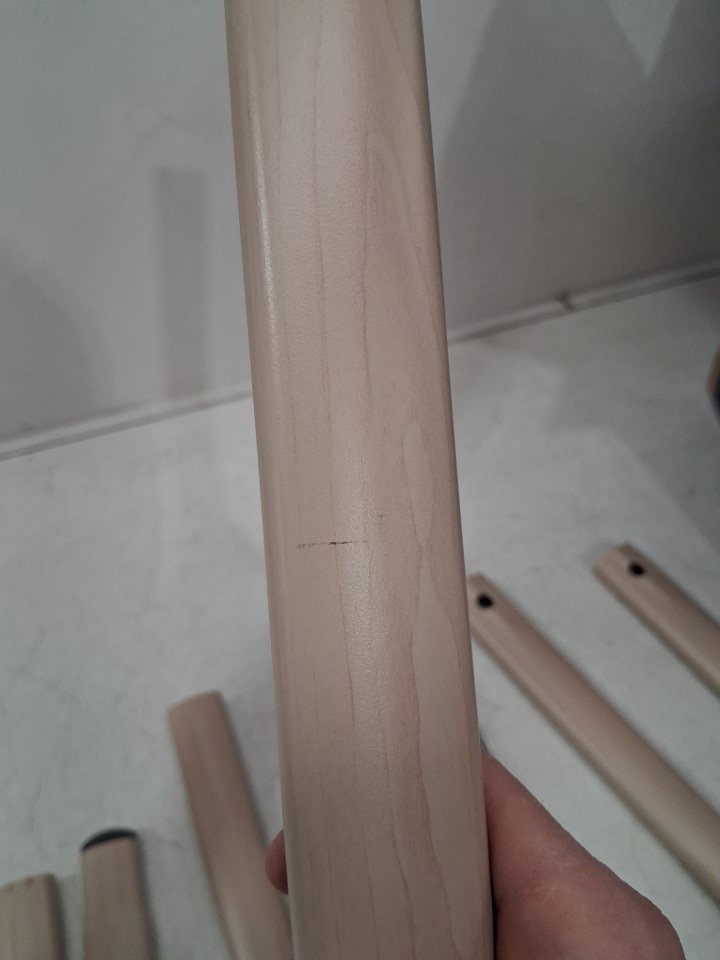 There are some scratches on the tray and leg pieces indicating previous assembly/use (see photos)