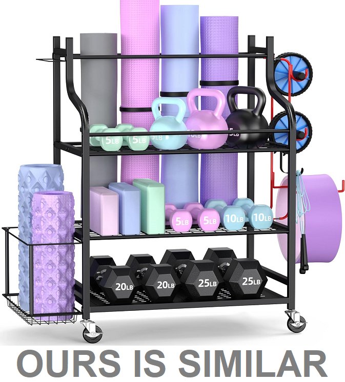 Gym equipment Storage Rack with Wheels and Hooks - black