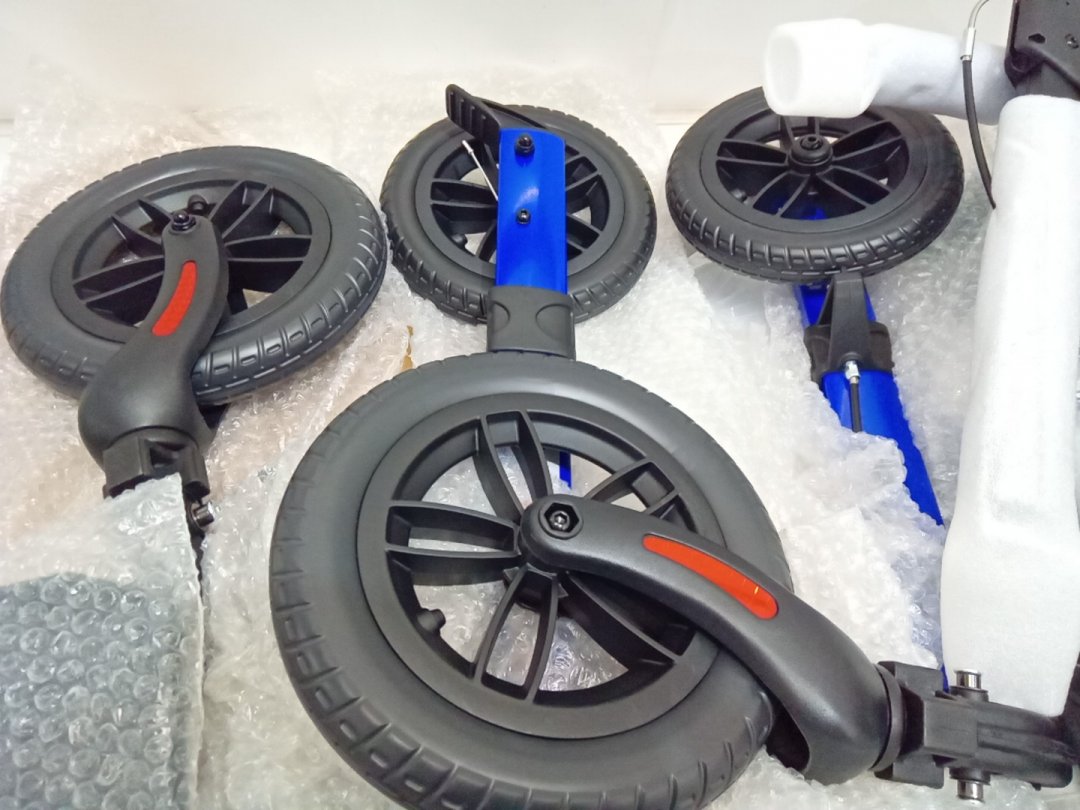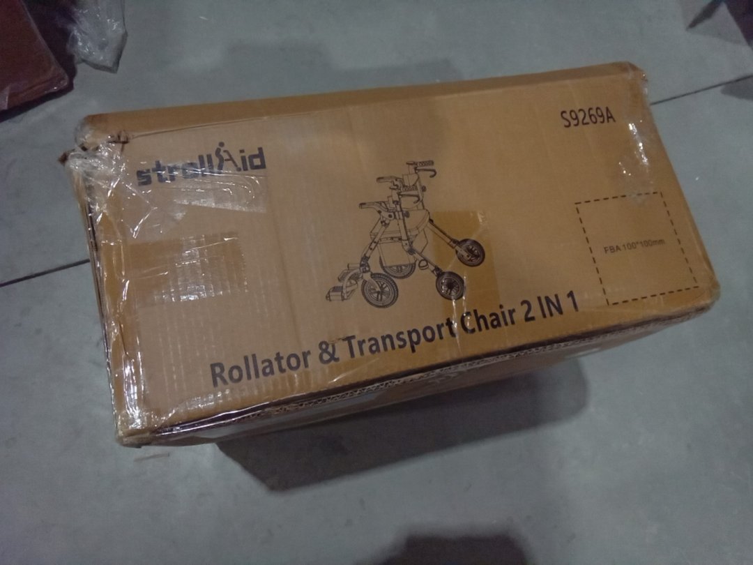 StrollAid 2-in-1 Rollator Walker/Wheelchair Combo Transport Chair with Brakes - Holds Up to 450 LBS - 10" Wheels - Blue (Model: S9269A)