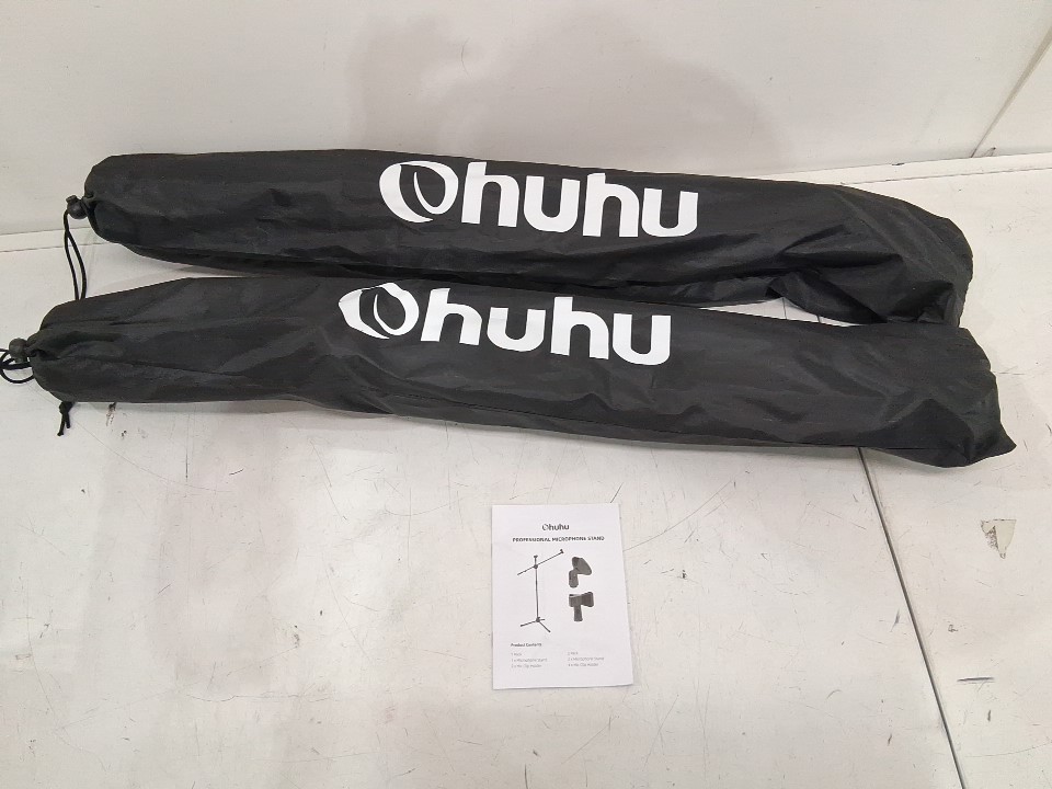 2PK OHUHU ADJUSTABLE MICRHOPHONE STAND WITH MIC CLIPS AND CARRYING BAGS - 28" x 30" - BLACK (MODEL: ‎Y42-80200-04)