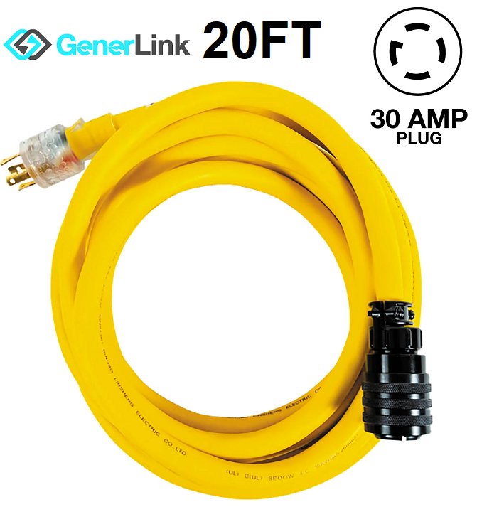 GenerLok power cable for portable generator to GenerLink transfer switch 30mp, l14-30 plug type - 20ft - yellow