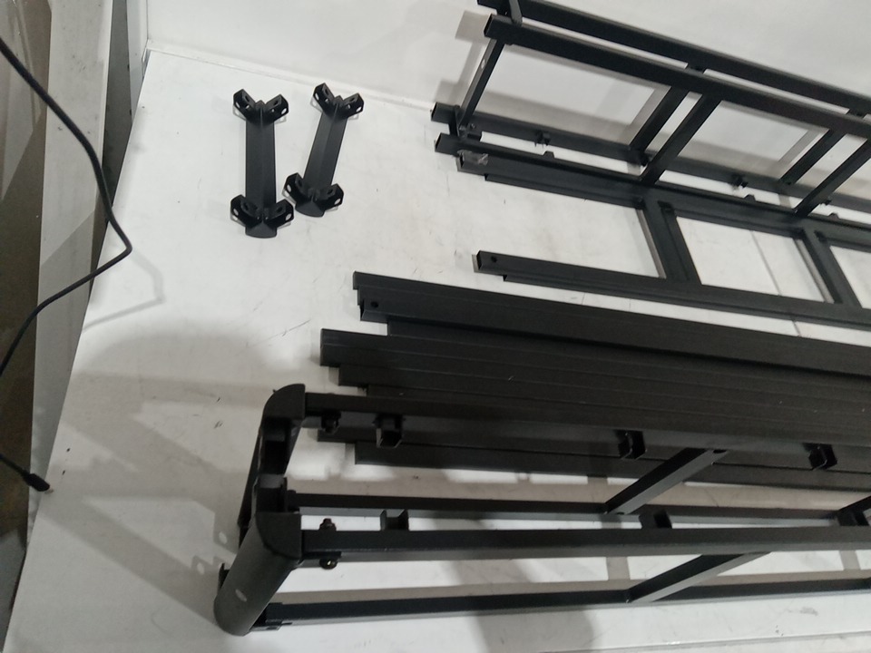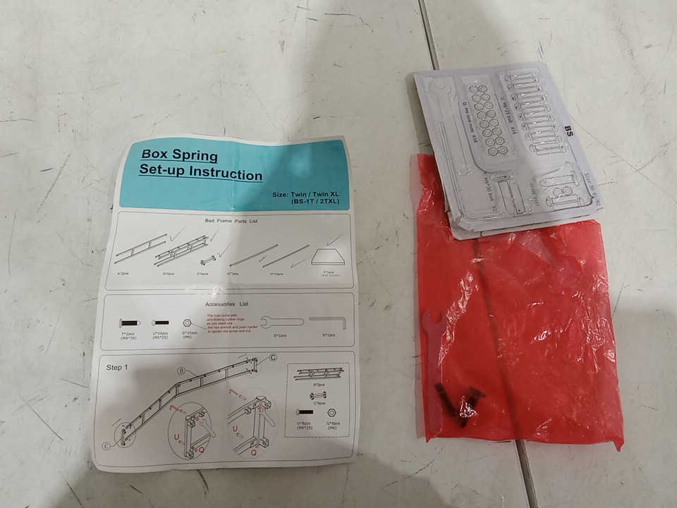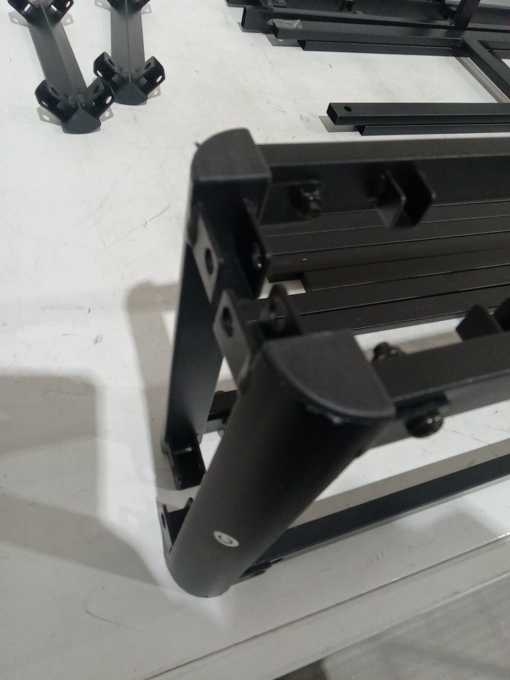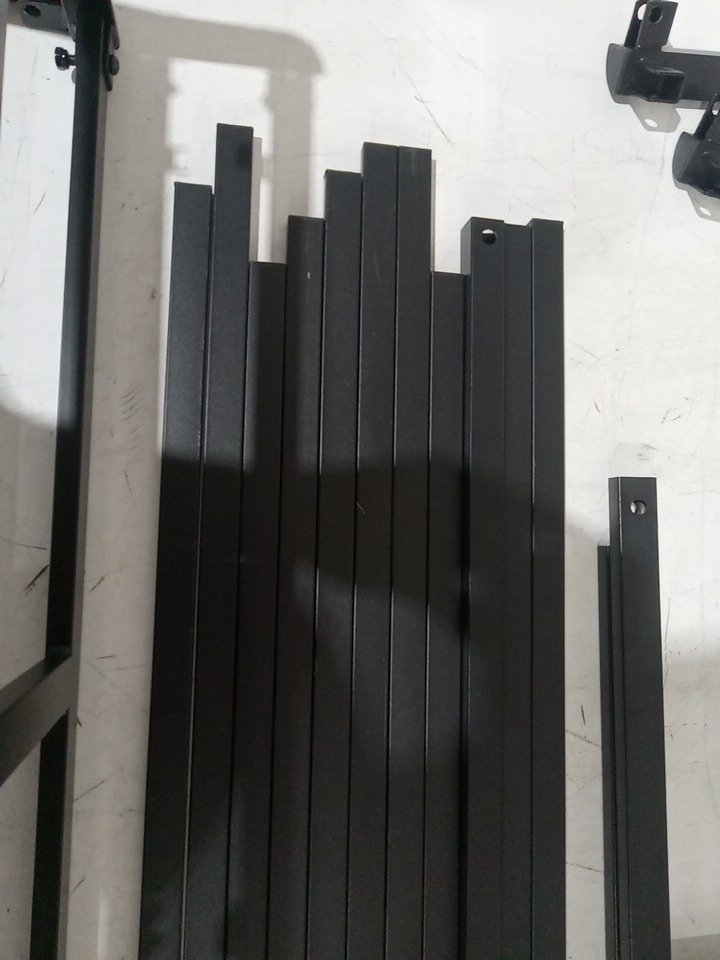 Their are some scuffs , scratches on the metal parts as well as some parts that are already assembled/ put together meaning this item has been previously assembled, all vital parts for assembly are present. their is some basic hardware but most of the basic hardware is missing, basic harware will need to be acquired elsewhere. see photos