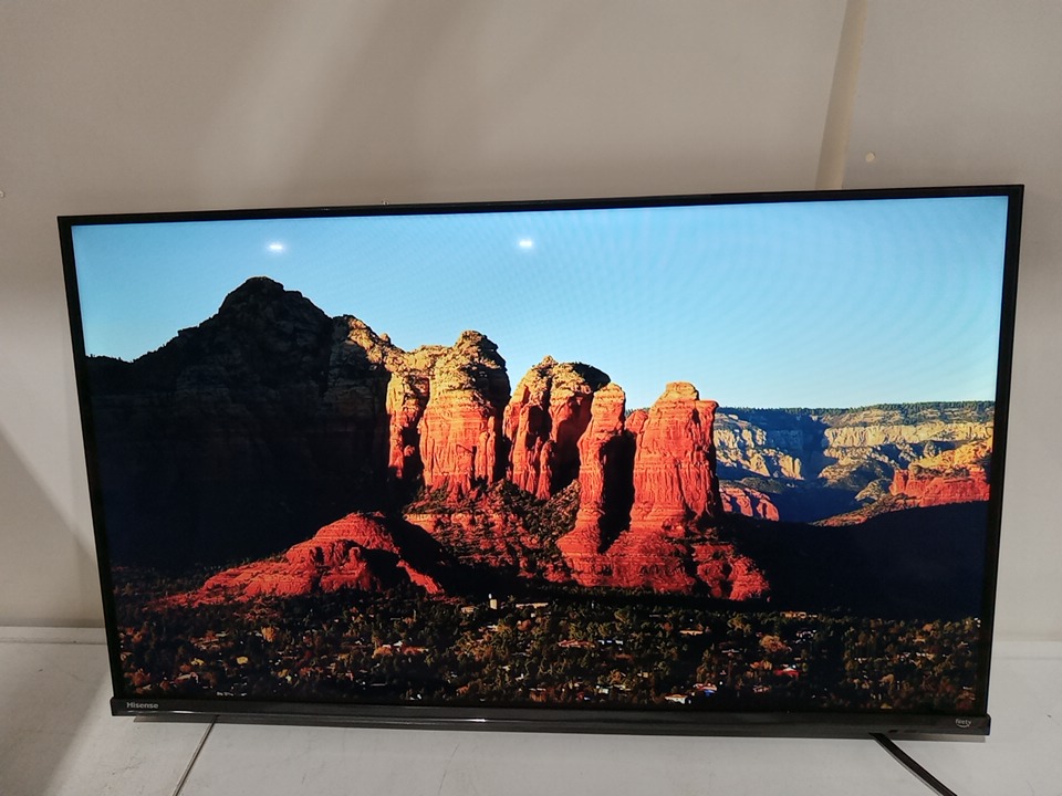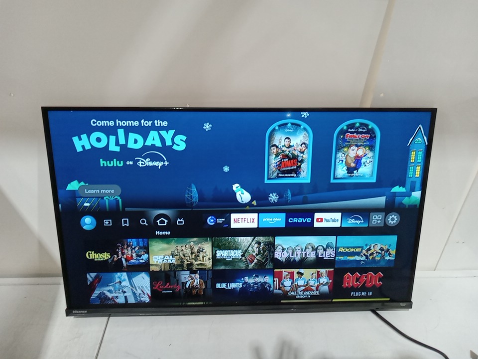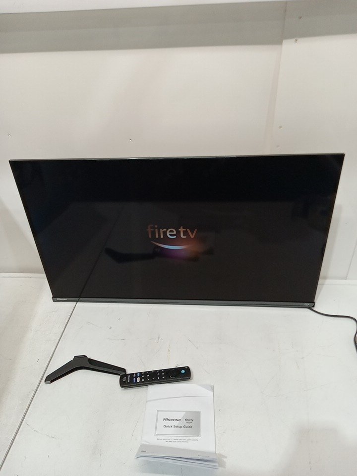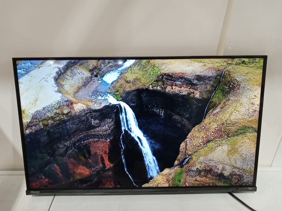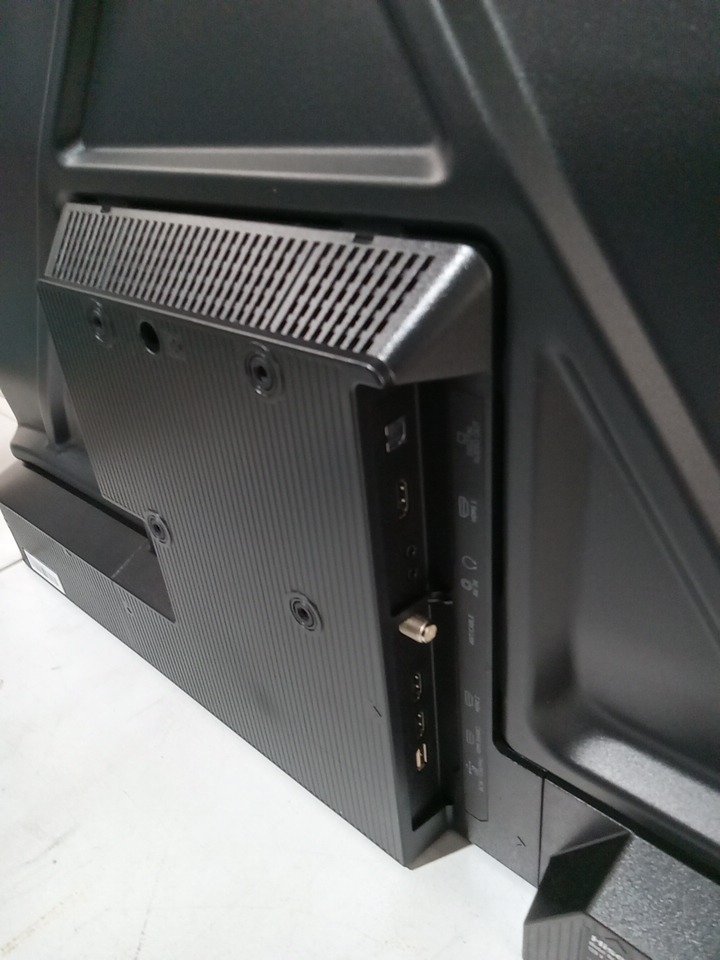 There are installation marks and signs present from prior use. It is missing one feet/leg. Tested for power, display and sound. Tested remote control functionality. *GENERIC CONDITION STATEMENT* All TV's and monitors should be inspected at our facility before leaving. We will strongly urge you to ask our staff for assistance in checking the condition of your display during pick up. This is done for customer peace of mind and for warranty purposes. If you refuse the on-site inspection, then any damage to the display, screen or physical damage done by transportation or handling will void our warranty/refund (issues not caused by transport/handling will still be covered; for example, an issue with volume control or WiFi connectivity)