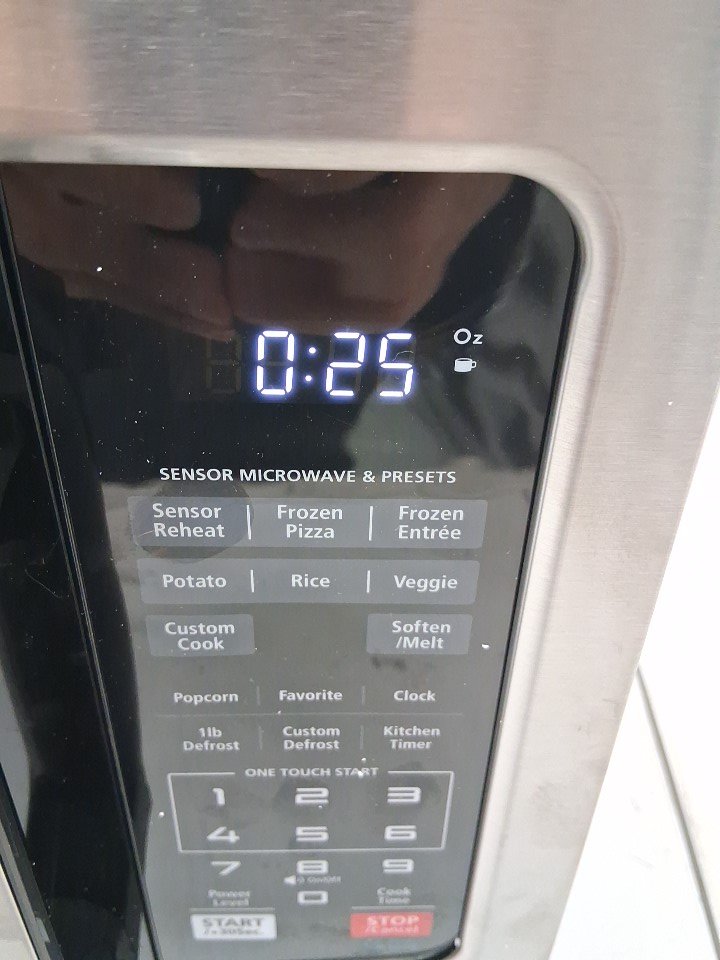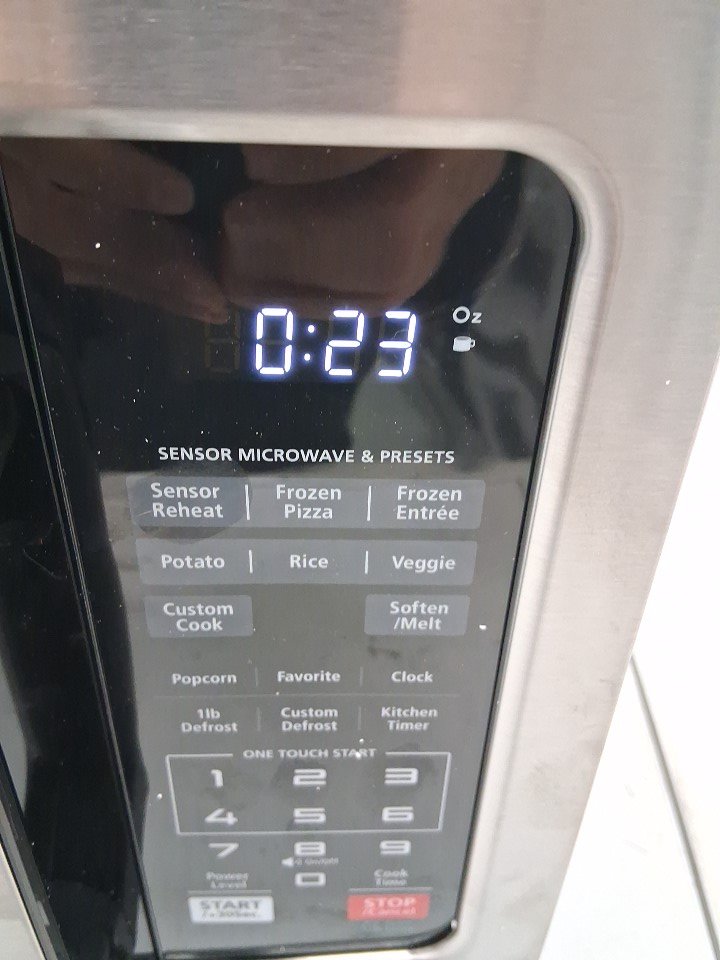 Small indent near microwave button panel. (See photos)