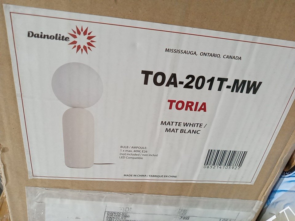 Dainolite Toria Table Lamp with White Glass Shade - matte white (model: toa-201t-mw)
