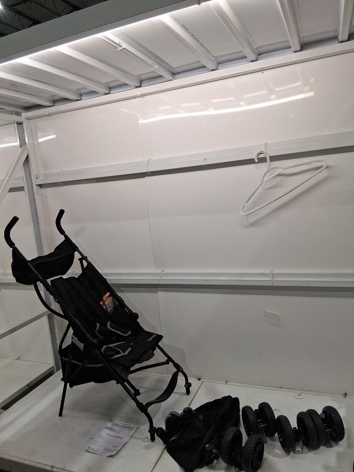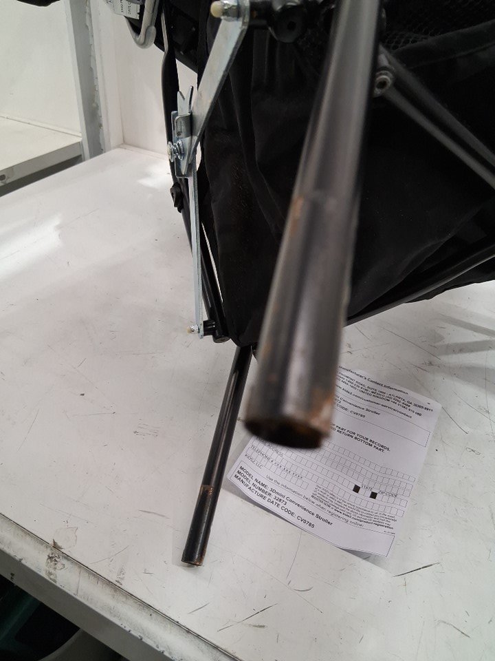 some light staining through out the product in multiple areas. some dust was found in the seat and some rust om the metal pieces where you click the wheels into