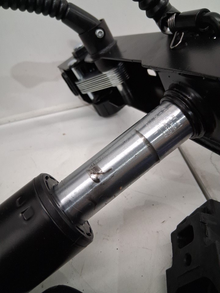 item has some minor marks/scratches from previous use also some dust on wheels and some sord of grease on pole please refer to pictures