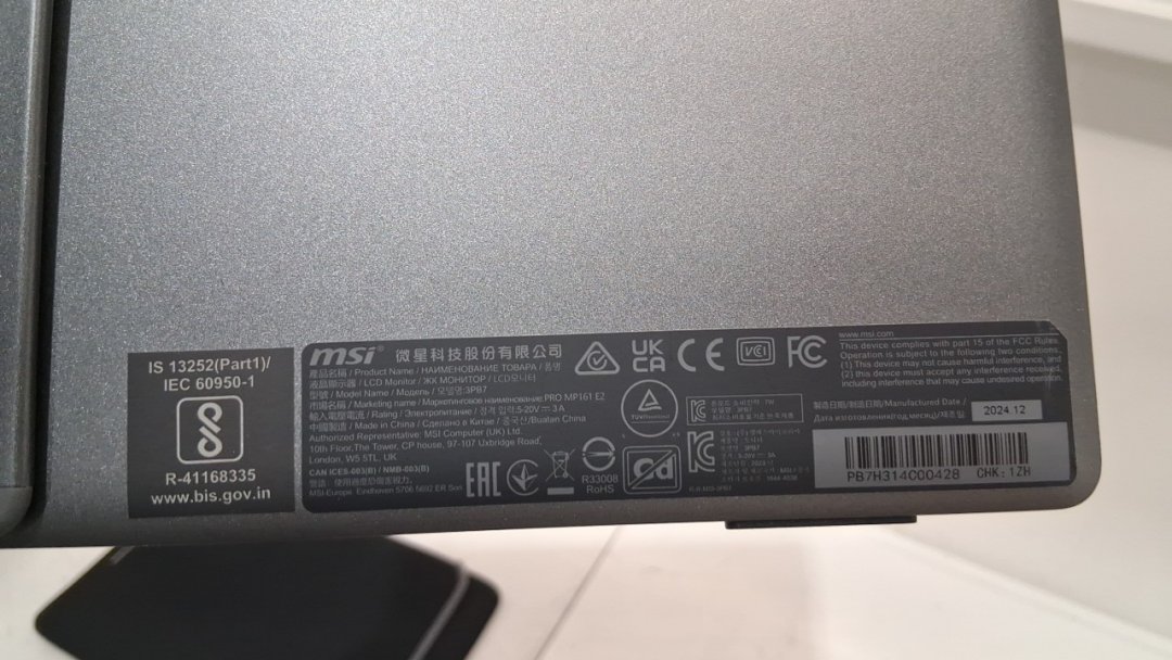 MSI Pro MP161 E2 Portable Monitor - 15.6" USB Type-C and mini hdmi - black