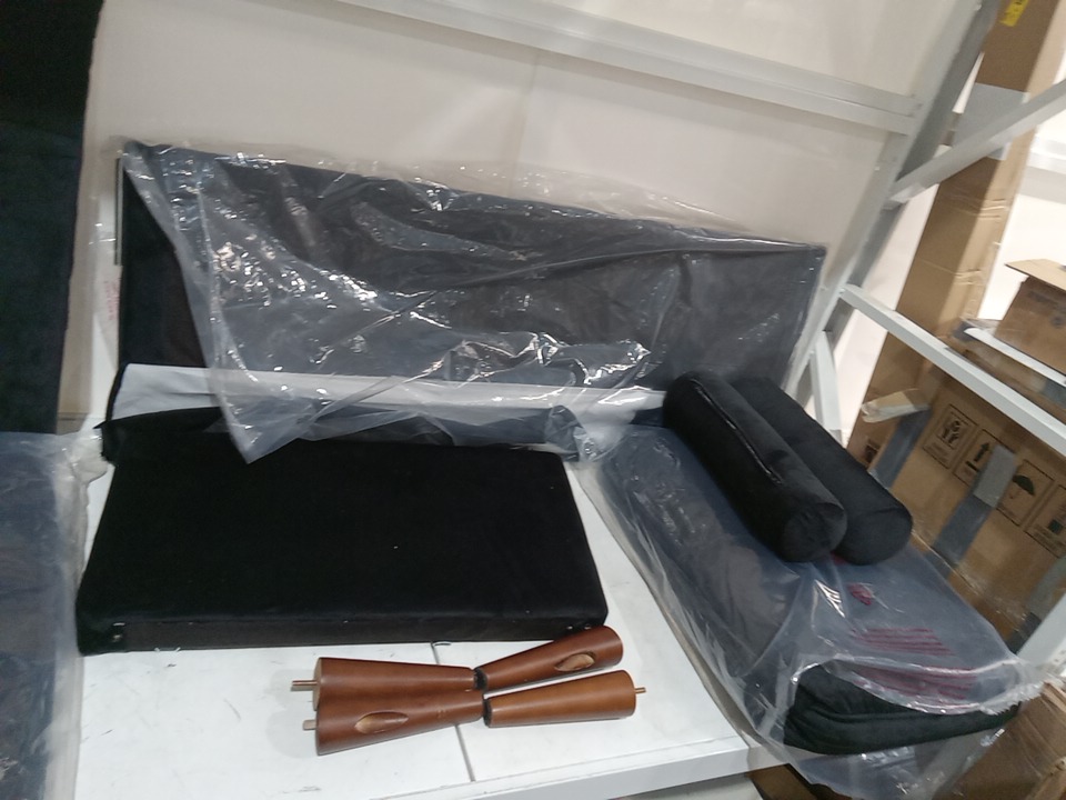 this item is missing the main seat cushion as seen in the main photo and their are some scuffs / scratches on the legs from shipping and handling, we recommend acquiring a different seat cushion separately so this item can be used. see photos