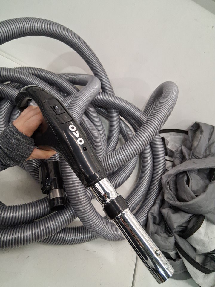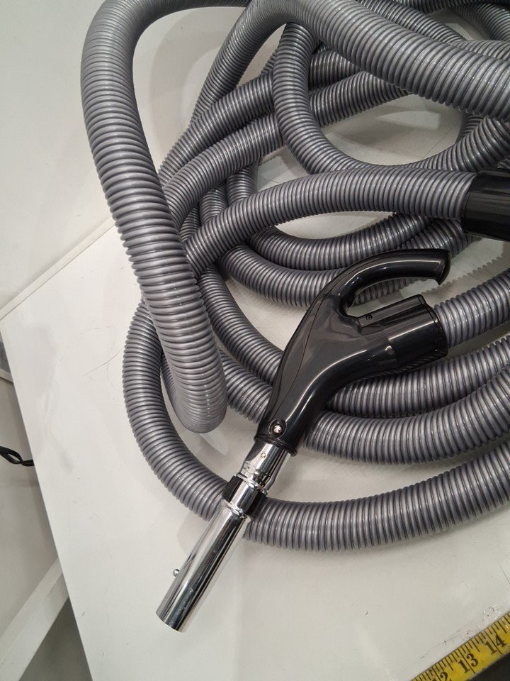30FT OVO Universal Central Vacuum , Low Voltage Switch at The Handle, Crushproof & Fits Most Inlets-Hose - Black & Grey With Cover (MODEL: ACCHO-30LV-BK)