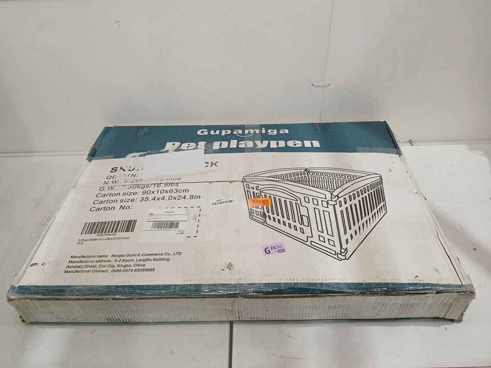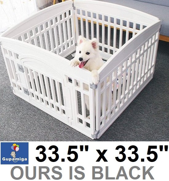GUPAMIGA PET PLAYPEN WITH DOOR FOLDABLE GATE MADE OF HEAVY PLASTIC 4-PANELS - 33.5" x 33.5" - black (MODEL: PPW-black)