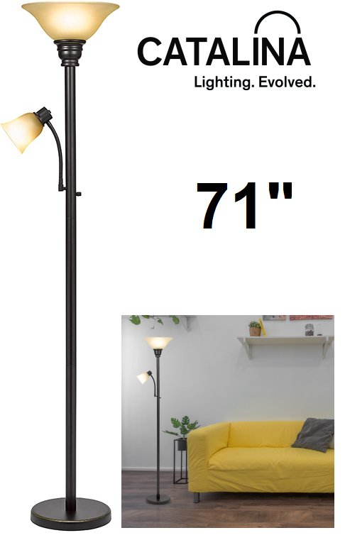 Catalina Lighting Traditional Metal Torchiere Floor Lamp with Reading Light & glass shade- 71" - Bronze (model: 18223-002)
