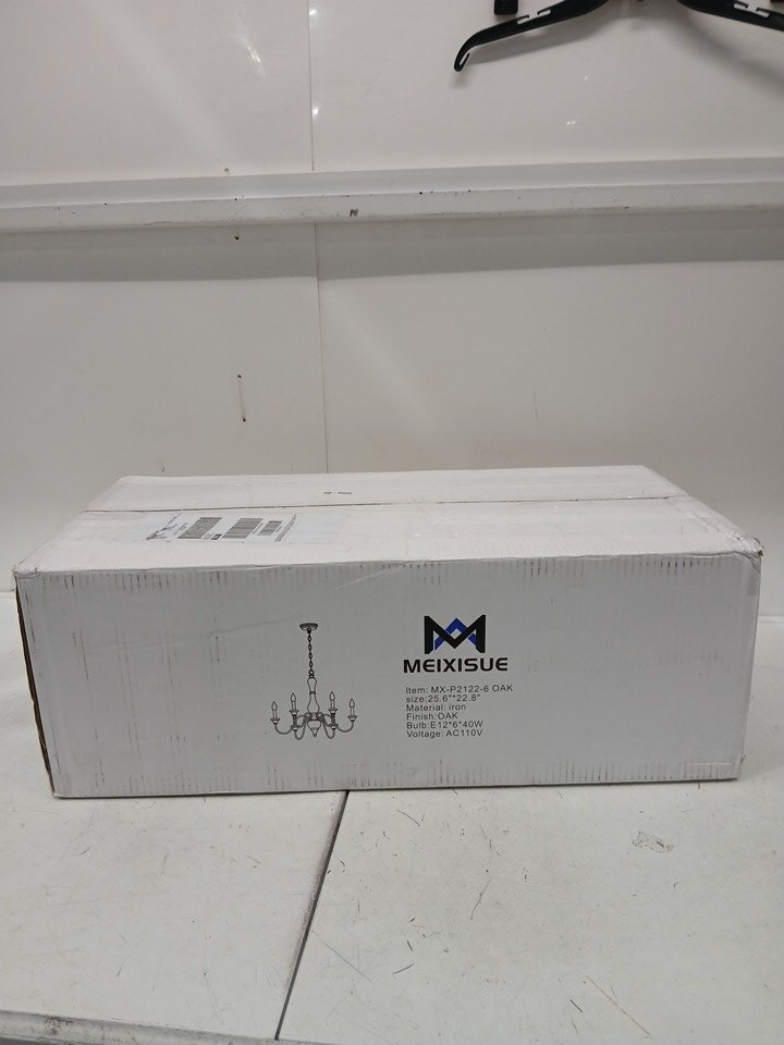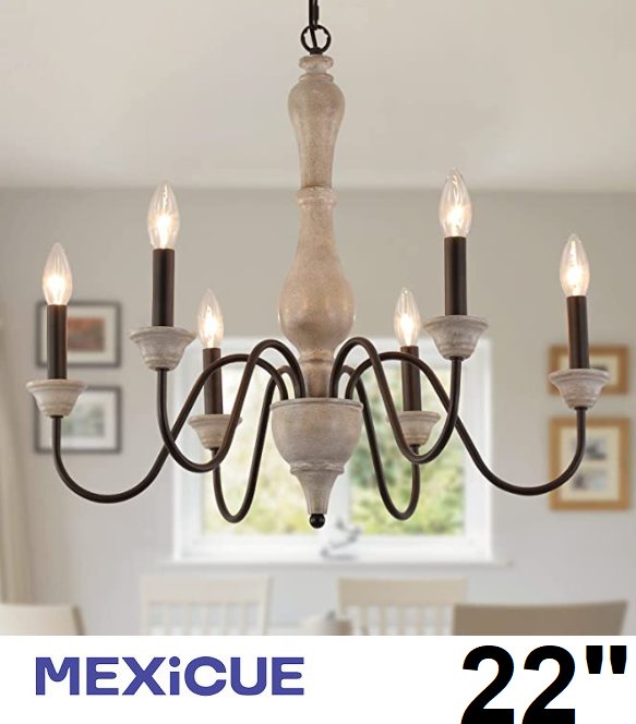 MEIXISUE FRENCH COUNTRY FARMHOUSE VINTAGE CHANDELIER HANGING LIGHT FIXTURE 22" x 25" - OAK WHITE (MODEL: ‎MX-P2122-6OAK)