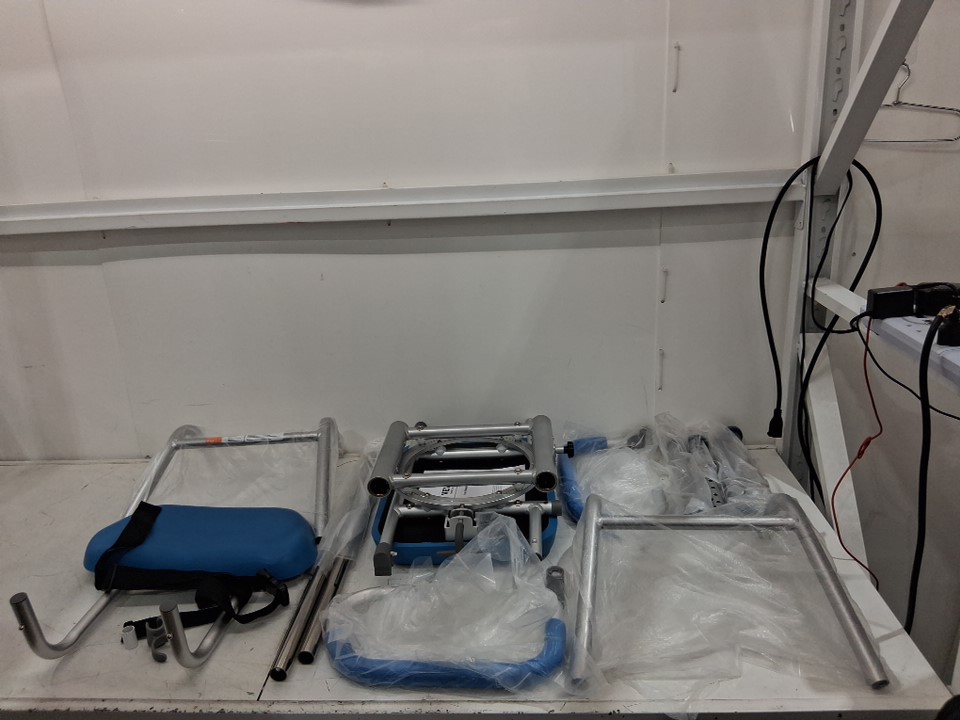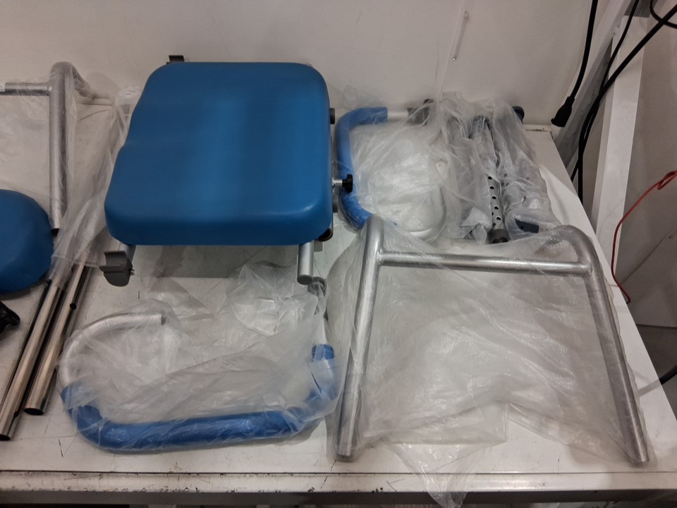 VEVOR Sliding Tub Transfer Bench with Swivel Seat Shower Chair - 330LBS - Silver/Blue - (Model: FBL650328)
