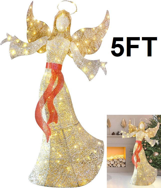 exgizmo Lighted Angel Christmas Decoration - 5ft, Artificial Christmas Décor - Golden