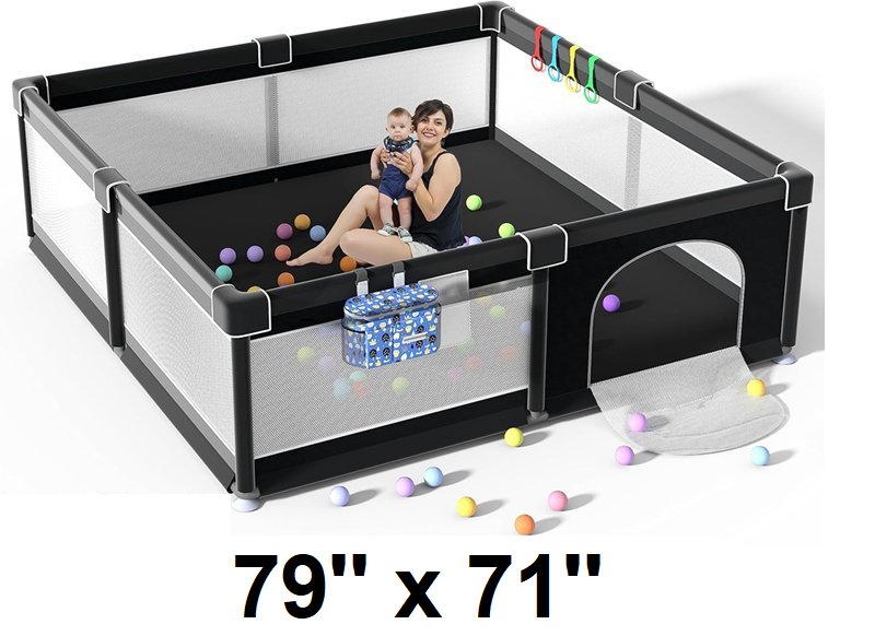 LUTIKIANG Indoor/Outdoor Gate Baby Playpen - 79" x 71" - black - (model: LUTI-P00)