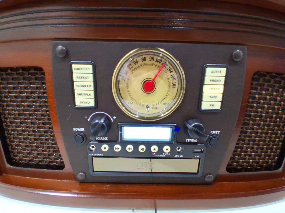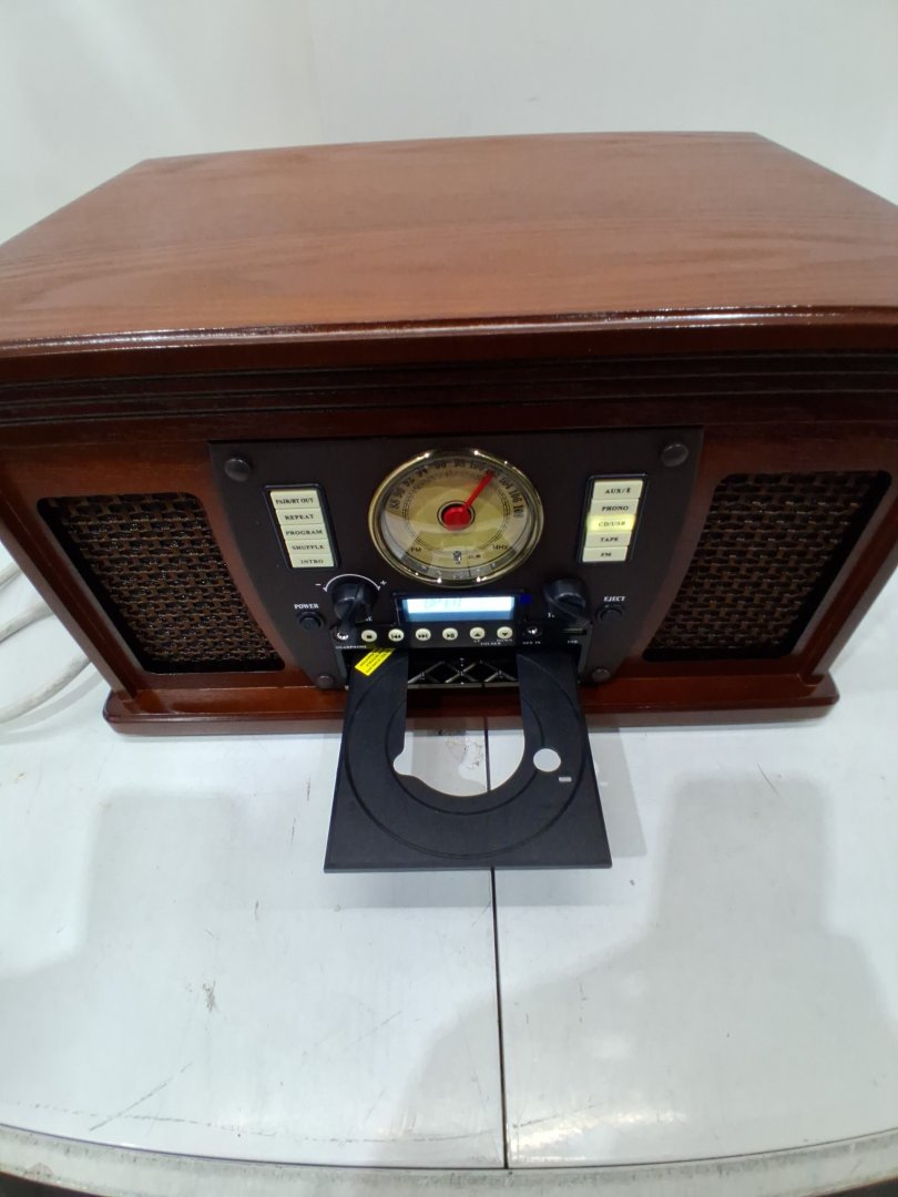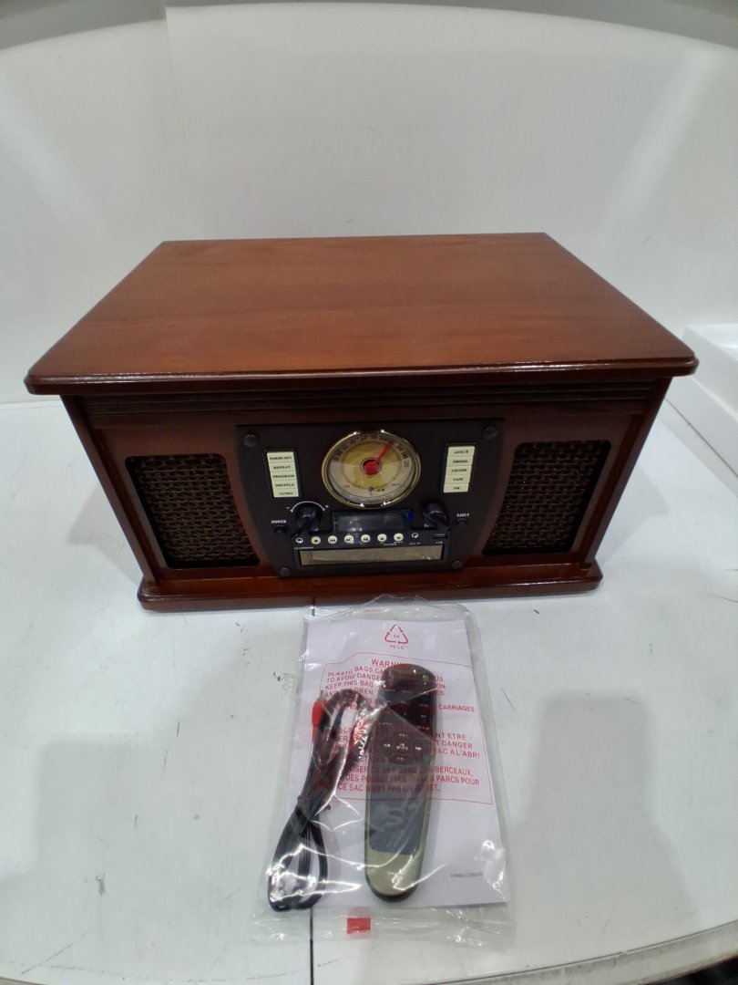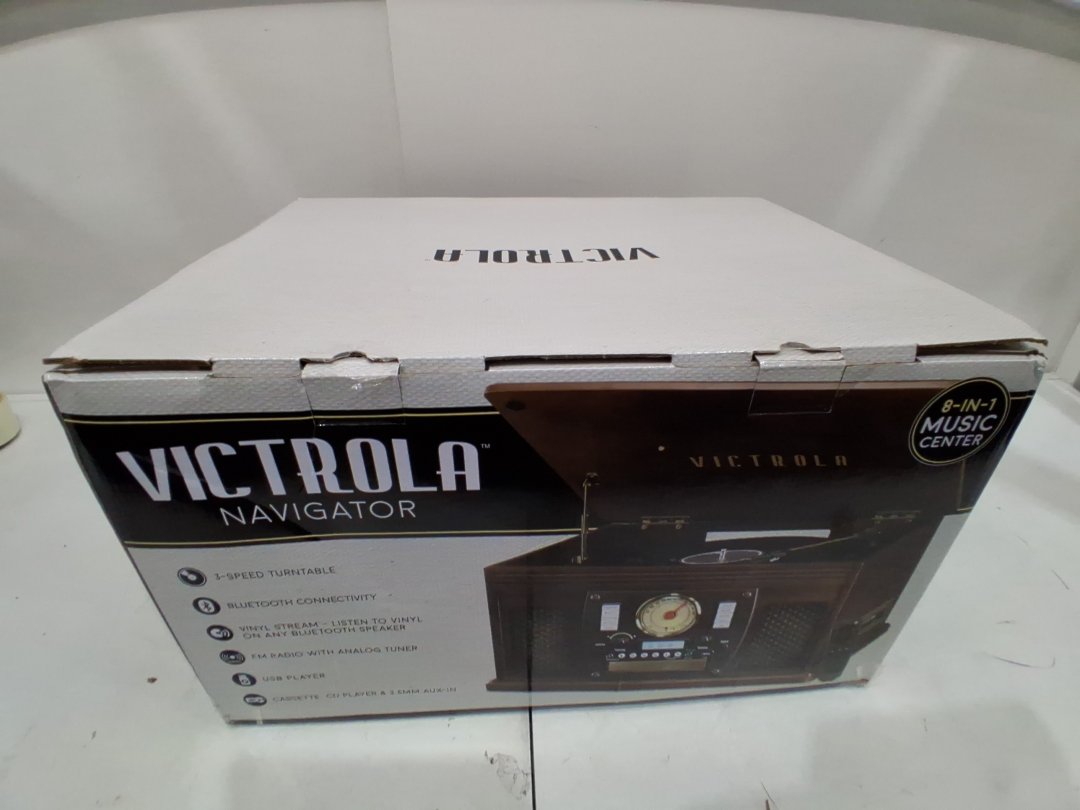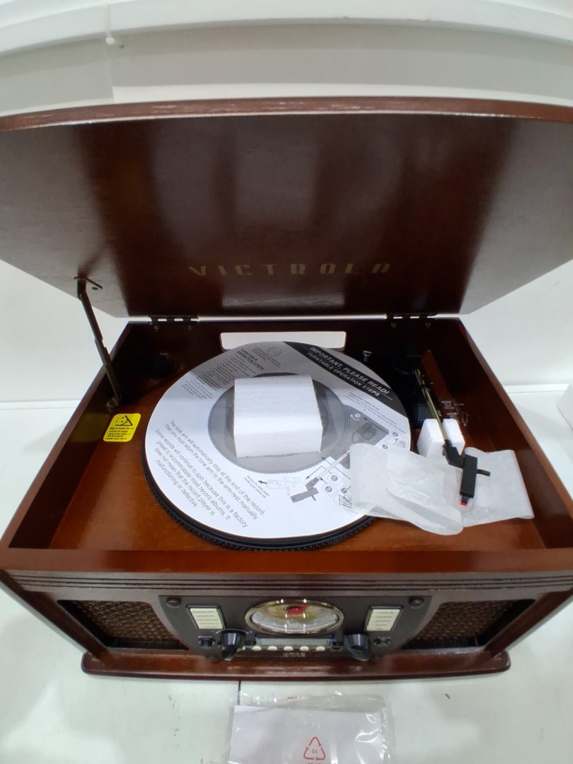 Victrola Navigator 8-in-1 Classic bluetooth vinyl Record Player with remote control & cassette, usb & cd ports - mahogany woodgrain (model: vta-600b.2)