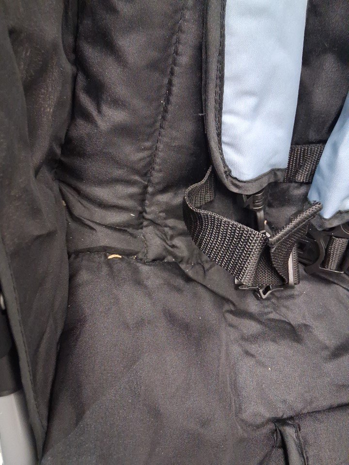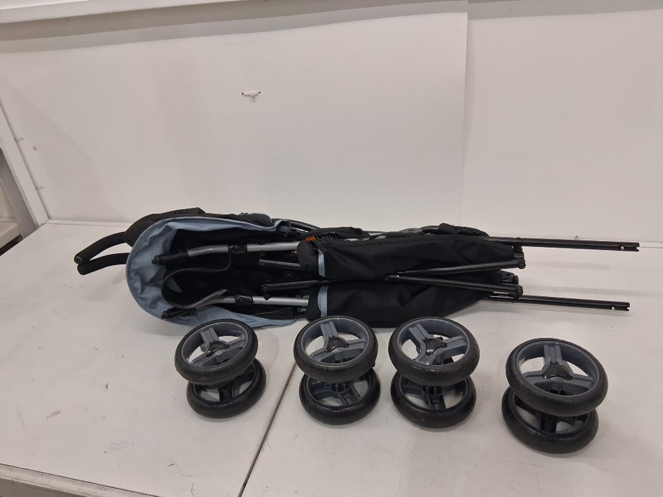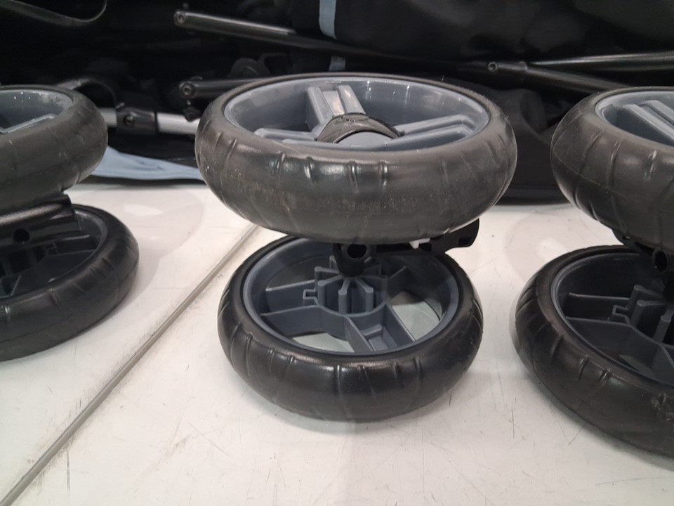 wheels have light dirt discoloration and seat has loose dirt debris on it