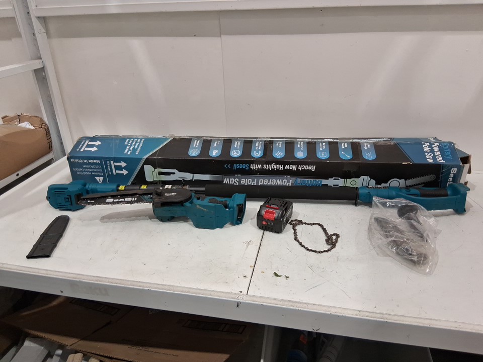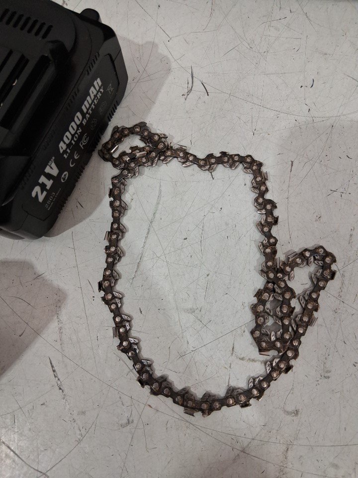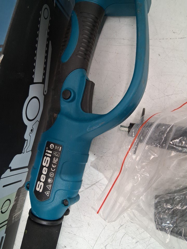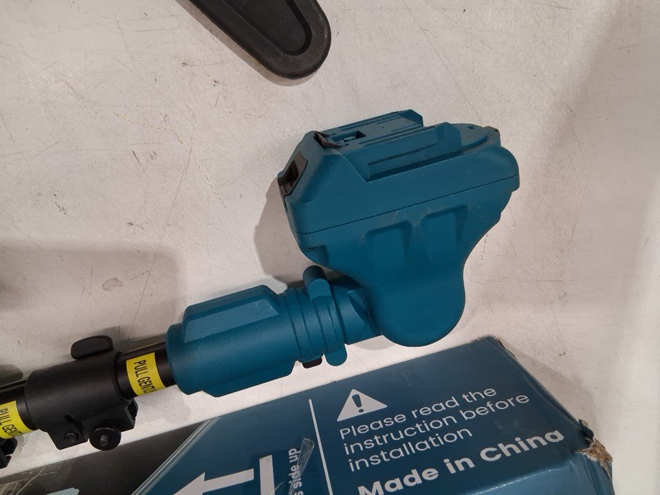 please note the item has dirt from previous use. there is also a slice in the foam handle. it is missing one of the batteries, some of the additional accessories, and the charging cord for the batteries. tested for power. see photos.