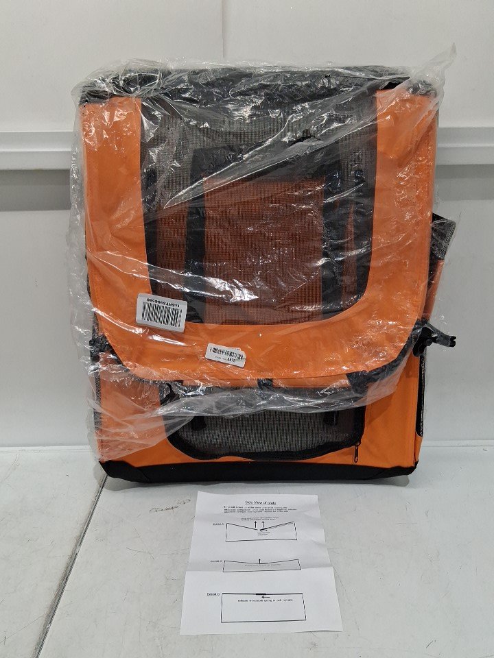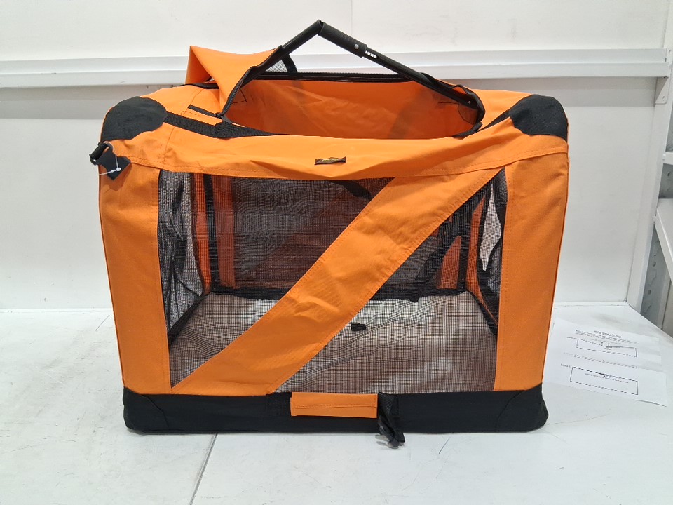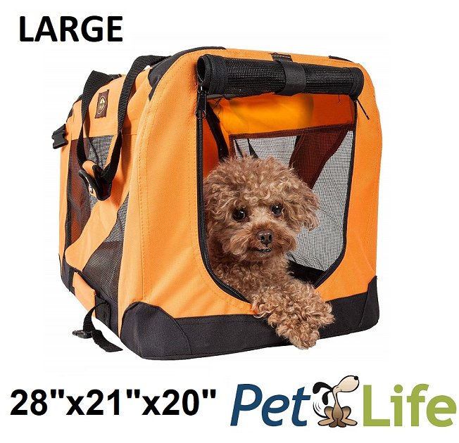 PET LIFE VISTA VIEW ZIPPERED SOFT FOLDING COLLAPSIBLE METAL FRAMED PET CRATE/DOG HOUSE - LARGE (28"X21"X20") - ORANGE