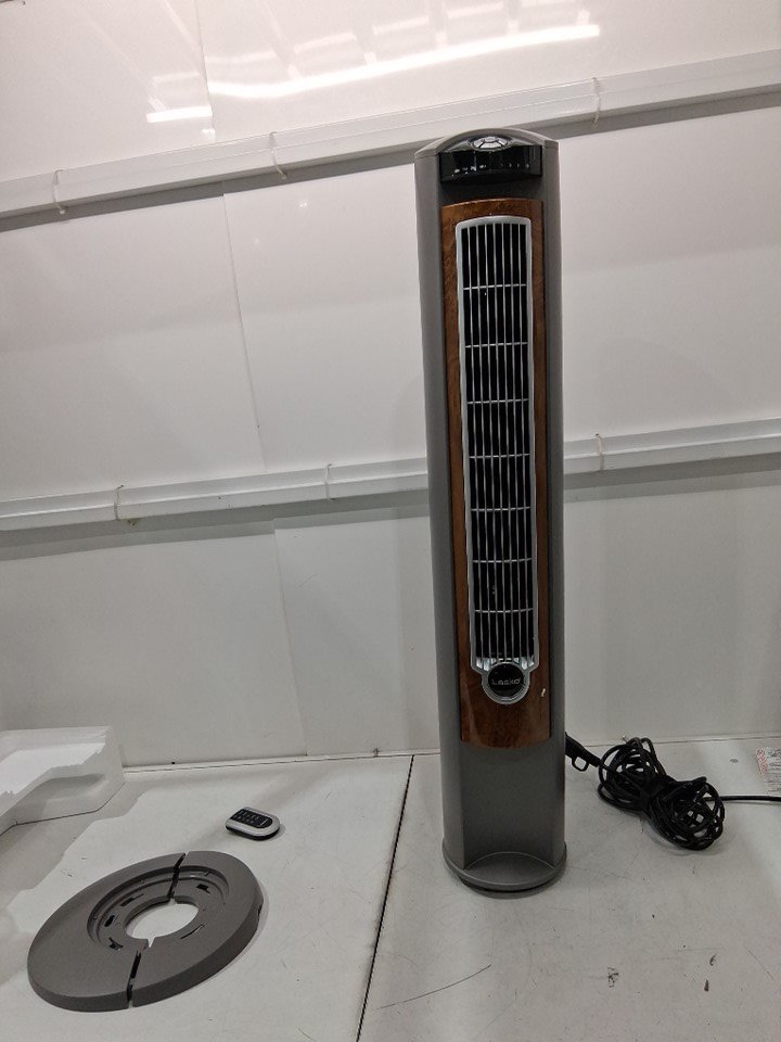 Lasko Wind Curve Portable Electric Oscillating Stand Up Tower Fan with Remote Control - 13'' x 13'' x 42.5'' - Woodgrain Accent (Model: T42954C)