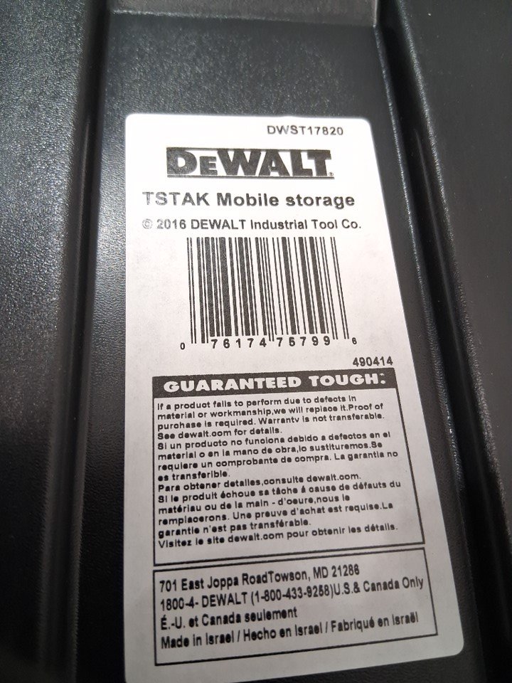 DEWALT TSTAK MOBILE STORAGE DEEP BOX ON WHEELS - BLACK (MODEL: DWST17820)