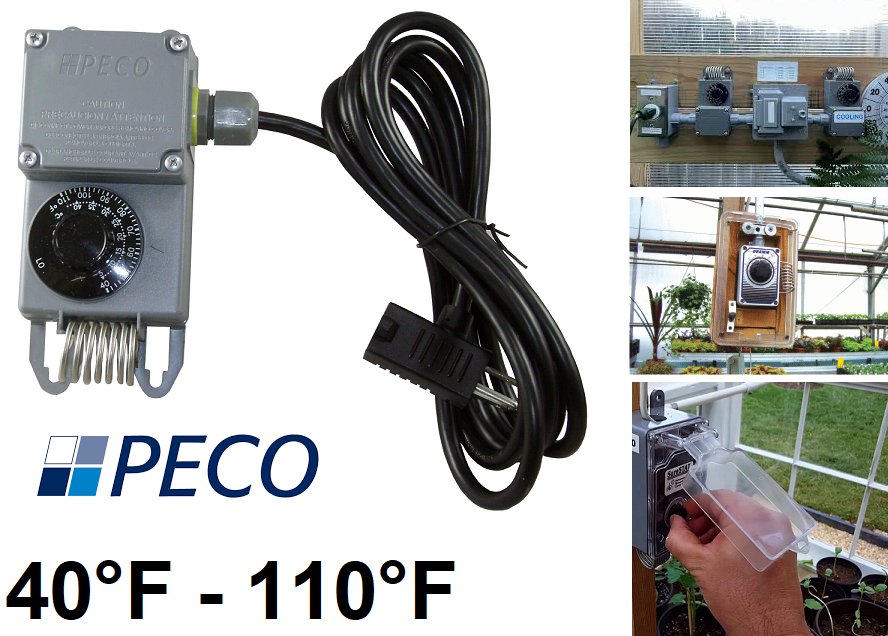 peco LINE VOLT MECHANICAL indoor/outdoor heating/cooling THERMOSTAT with hydraulic air coil and piggyback cord - 40°f to 110°f - grey (model: tf115)