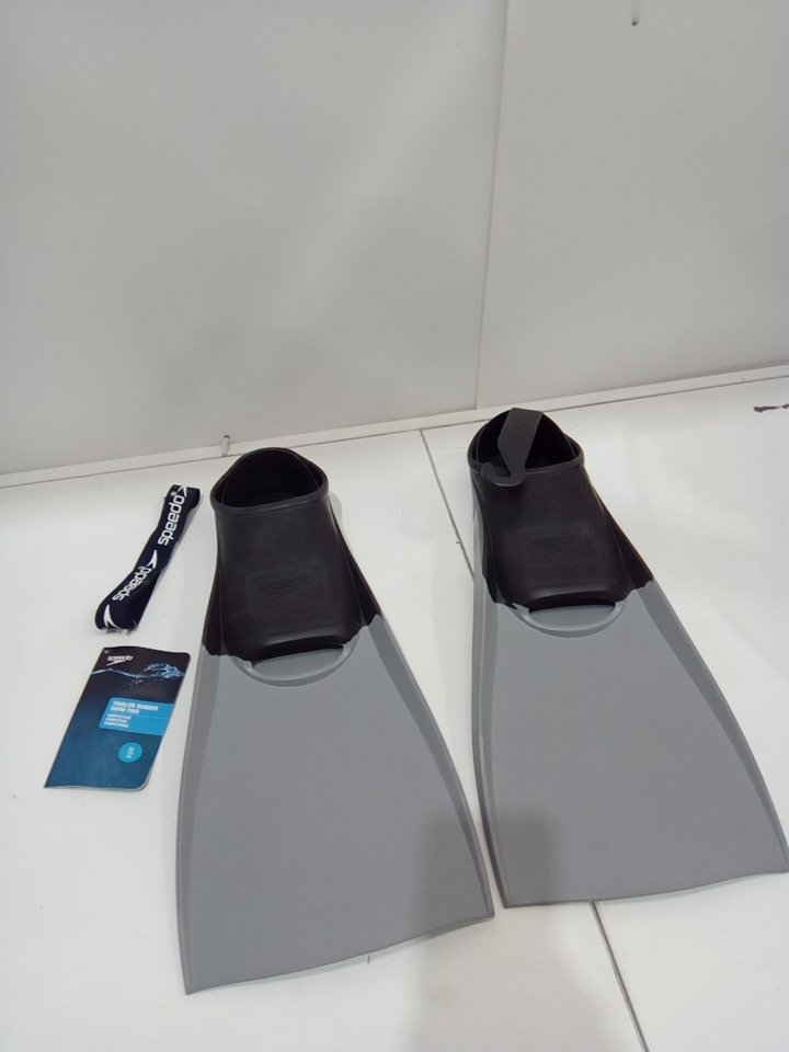 UNISEX ADULT SPEEDO trialon RUBBER SWIMMING FINS - extra large (men 10-11/women 11-12) - GREY/black