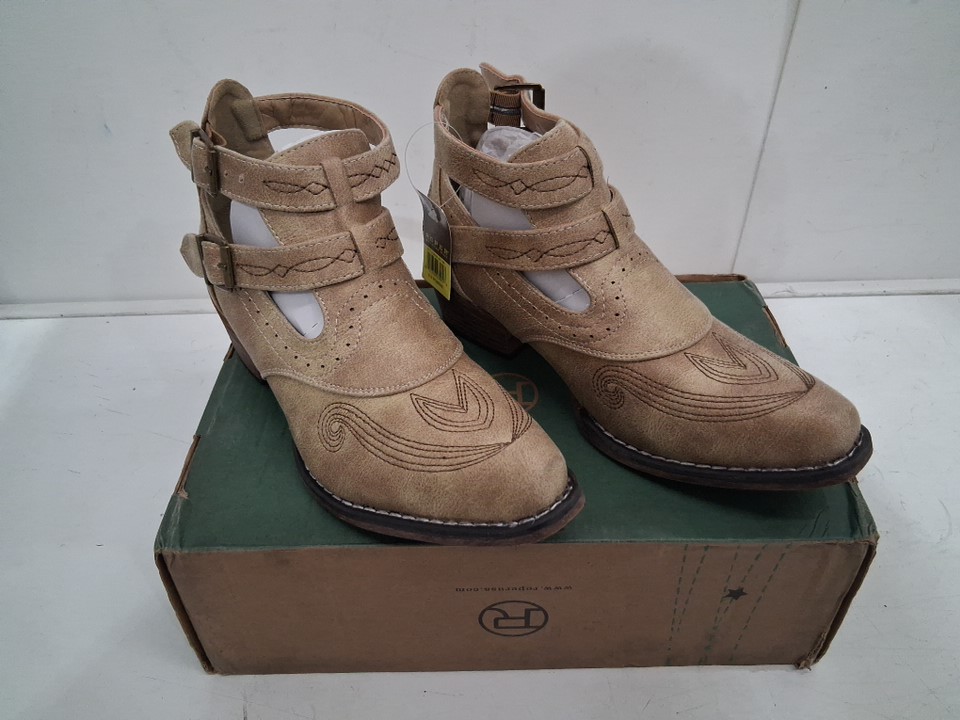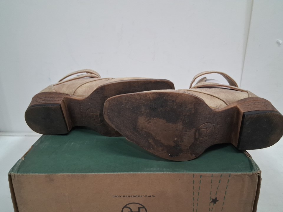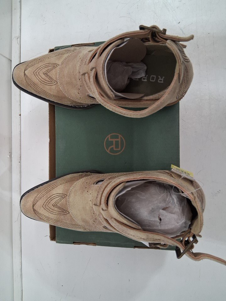 Please See Photos: - The item still has its retail tag, however some distress in the soles, and some minor debris suggest light previous use