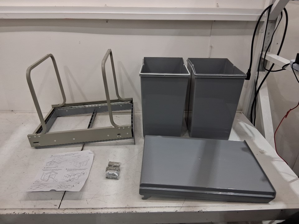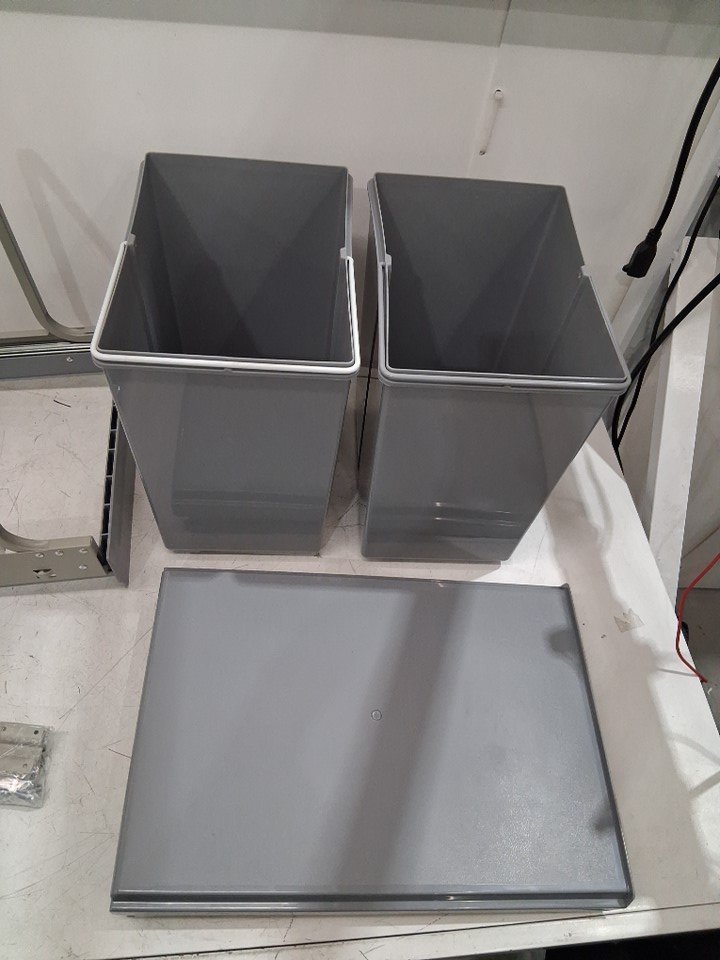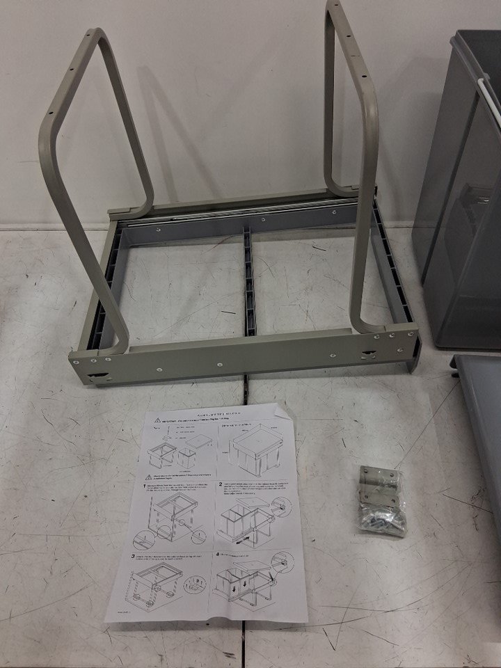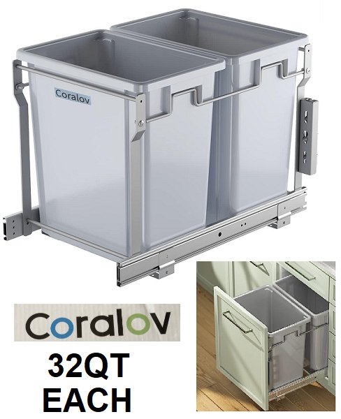 CORALOV DUAL UNDER-SINK PULL-OUT TRASH/GARBAGE CANS FOR RECYCLING AND TRASH, 32QT EACH (64QT TOTAL) GREY (MODEL: C0009539A)