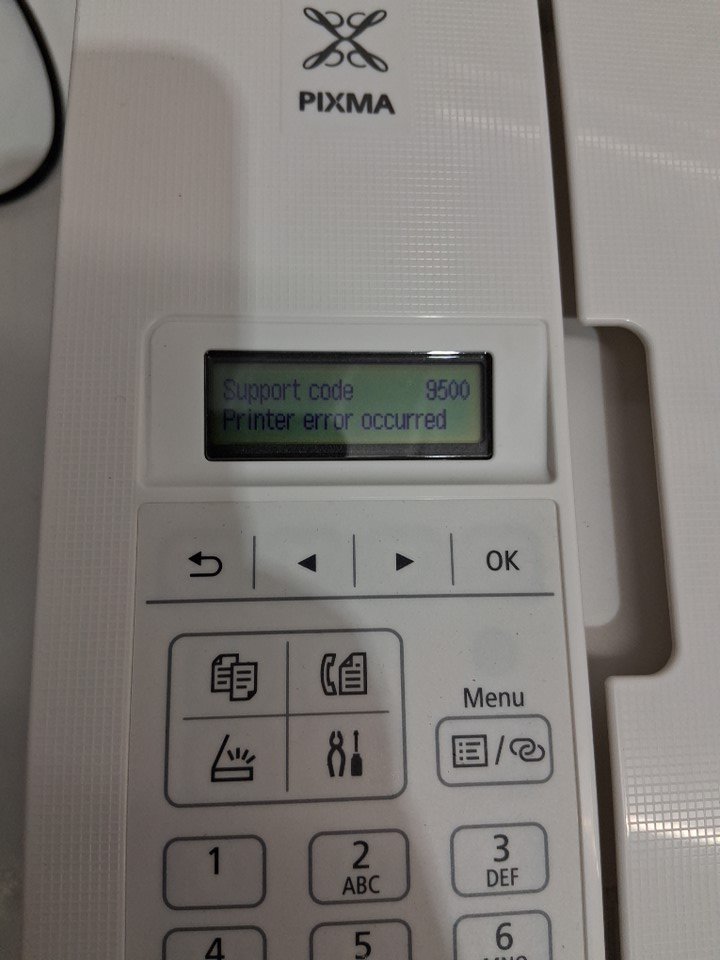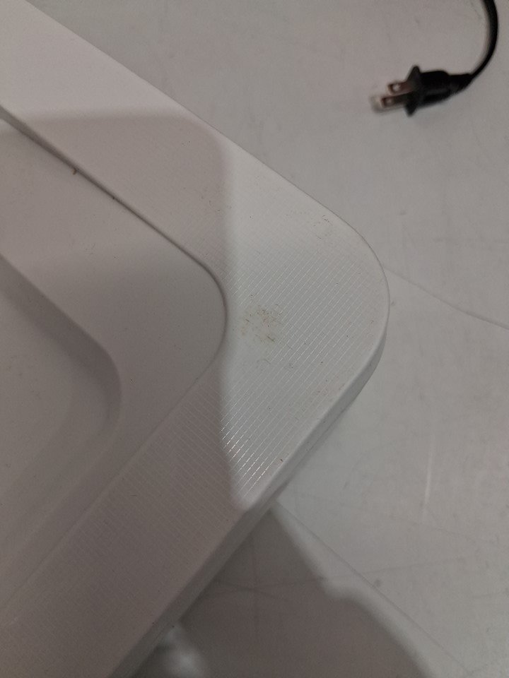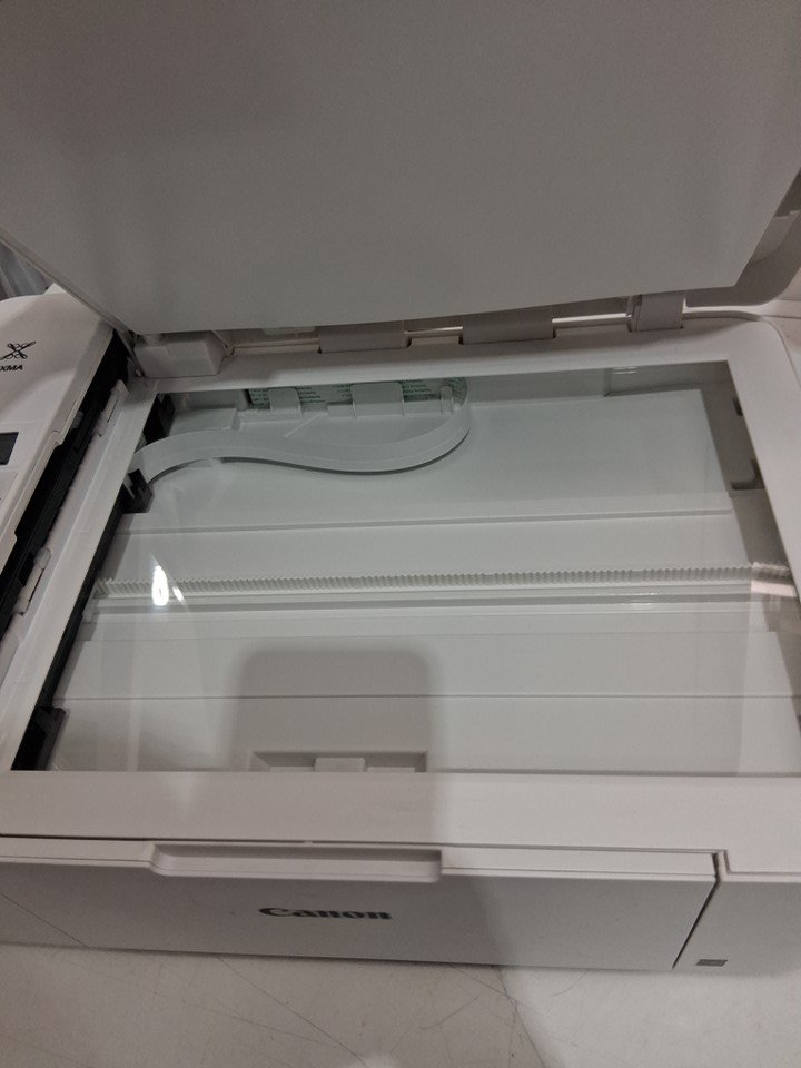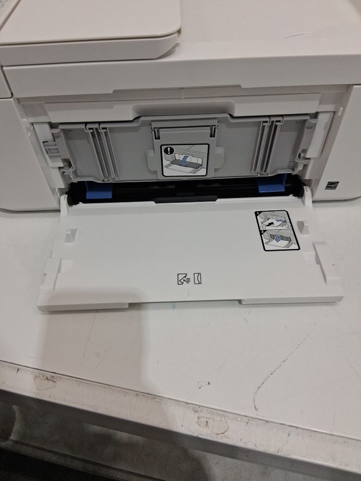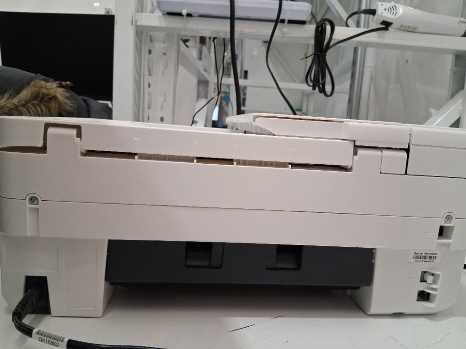 this does show signs of use, such as finger prints and lack of ink cartridges. tested for power. (error is due to lack of both ink and paper)