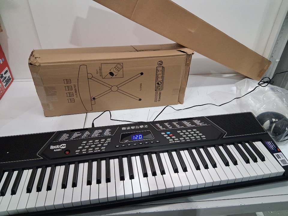RockJam 61 Key Keyboard Piano With Pitch Bend Kit, Keyboard Stand, and Piano Bench - 9V - black (model: rj5061)