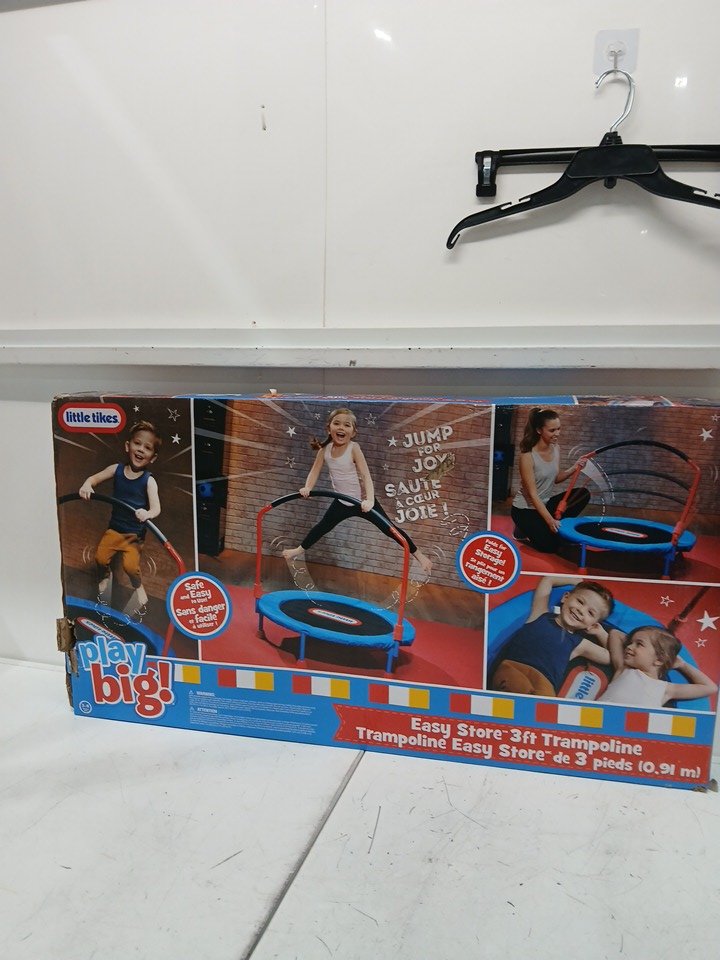 LITTLE TIKES Play Big EASY-STORE KIDS TRAMPOLINE - 3FT - MAX WEIGHT 55LBS - BLUE/MULTICOLOUR - (MODEL: 642265PC)