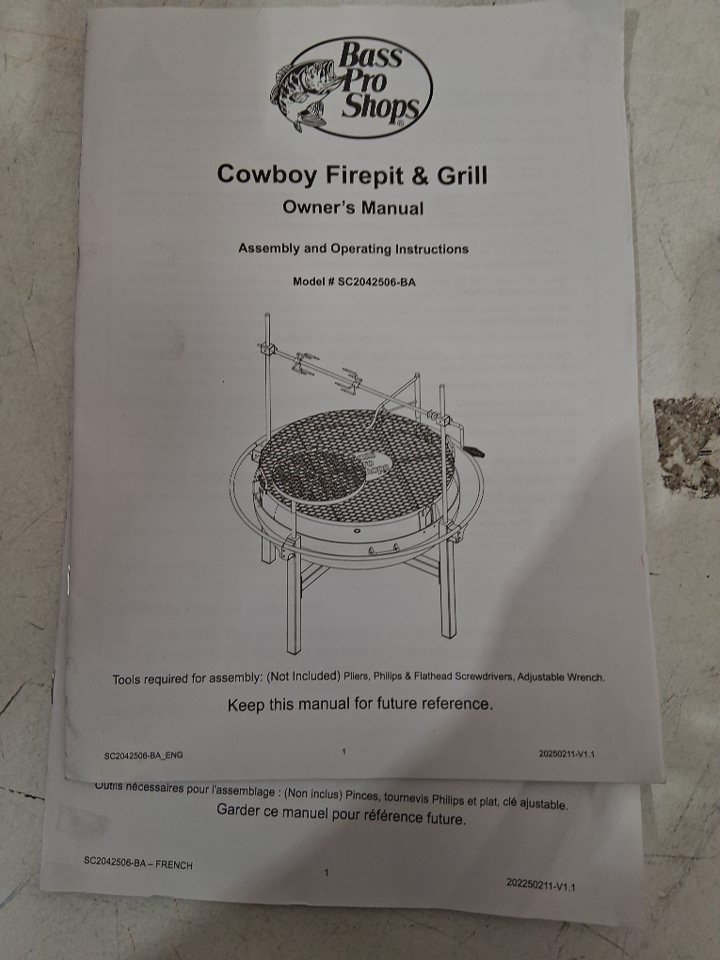 Bass Pro Shops Cowboy Fire Pit Grill - stainless steel/ black - (model: sc2042506-ba)