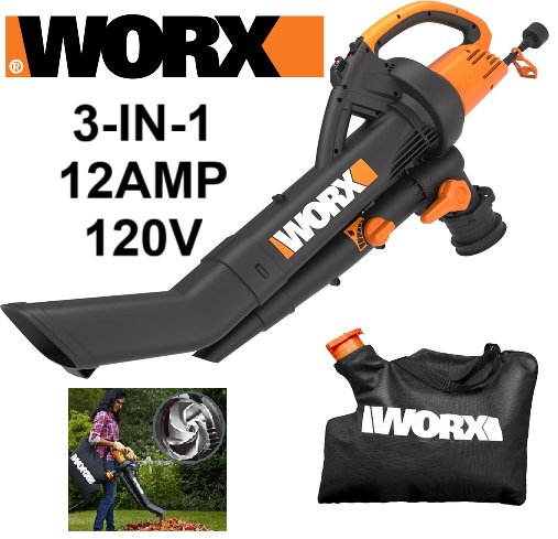 worx 3-in-1 Electric Leaf Blower/Leaf Vacuum/Mulcher - 12amp 120v - black/orange (model: wg505)