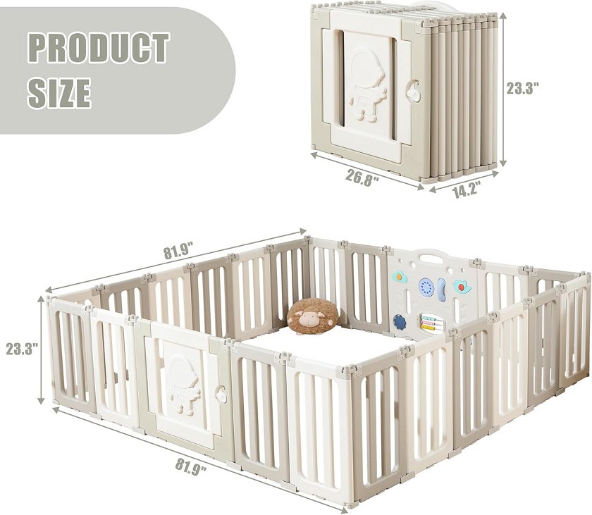 bestgame 22-panel portable foldable baby playpen - 81.9" x 81.9" x 23.3" - grey/white (wl-10017, xlwl-1006)model: