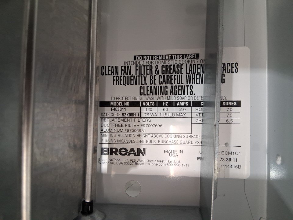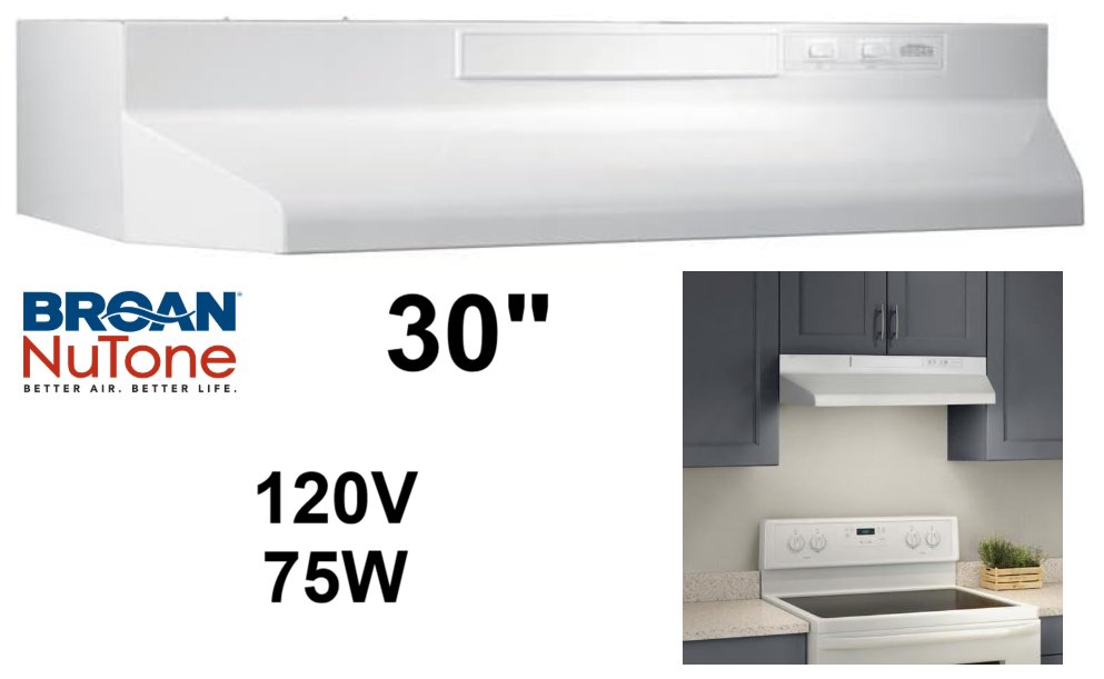 broan nutone convertible range hood- 2 speed, 120v, 75w- 30" - white ( model: ‎F403011)