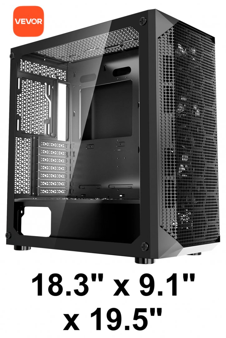 Vevor Full Tower High Airflow PC Gaming Case With Tempered Glass Side - 18.3" x 9.1" x 19.5" - Black (Model: 230B)