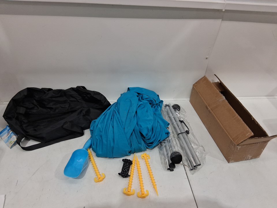 beach tent sun shelter with ground poles and anti wind rope - 11ft x 11ft - blue