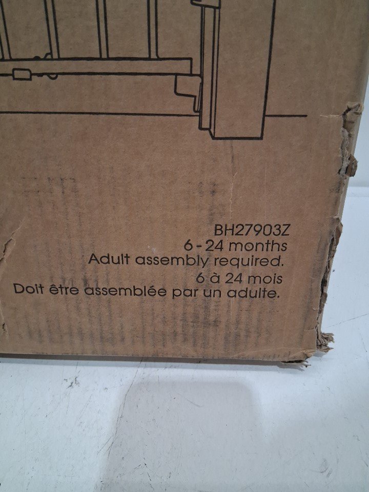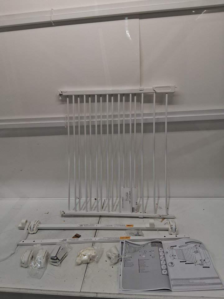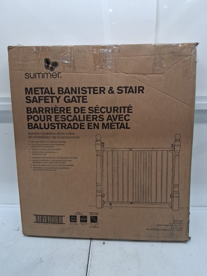 SUMMER INFANT METAL adjustable walk through BANISTER AND STAIR SAFETY BABY PET GATE BARRIER - 32.5" height x 31" to 46" wide - white (model: bh27903z)