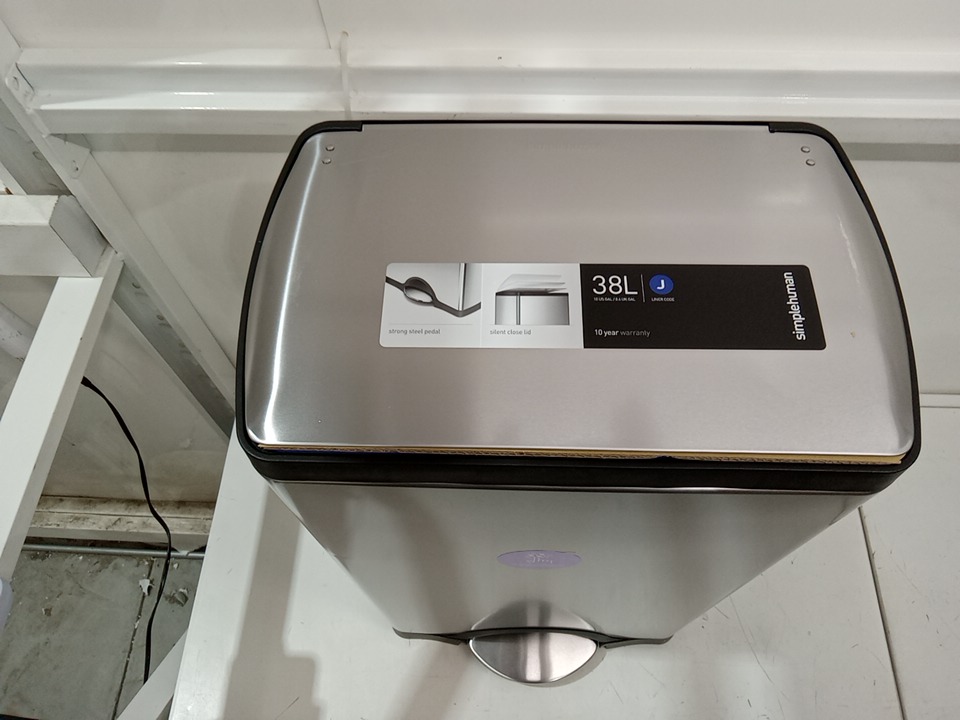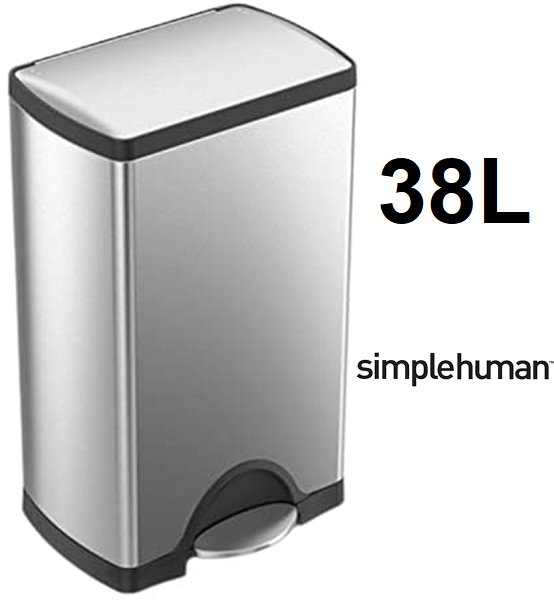 simplehuman Rectangular Step Trash Can - 38L - STAINLESS STEEL/BLACK ( MODEL: cw1814)