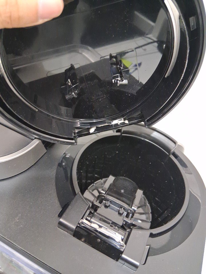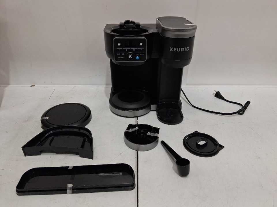 missing coffee pot, some scuffs on lid and one broken lid that could be repaired. Tested for power