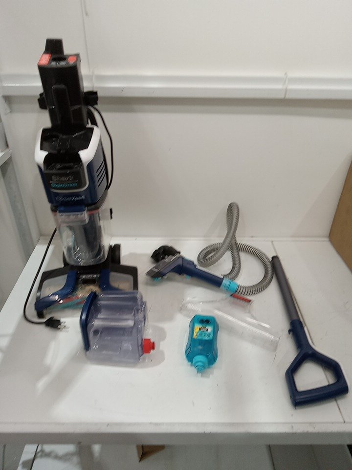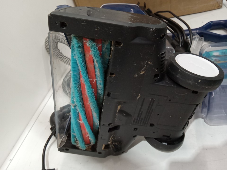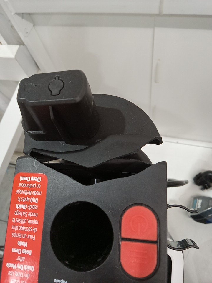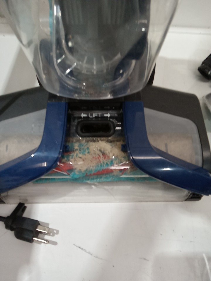 there is a build up o-f hair and dirt in the brush head and the cord wrap at the top of the vacuum is broken, please see photos