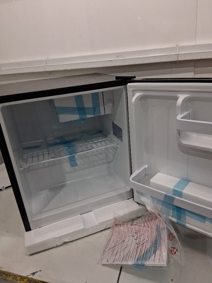 the handle of the door is broken off and also item has some minor marks possibly due to shipping please refer to pictures tested for power