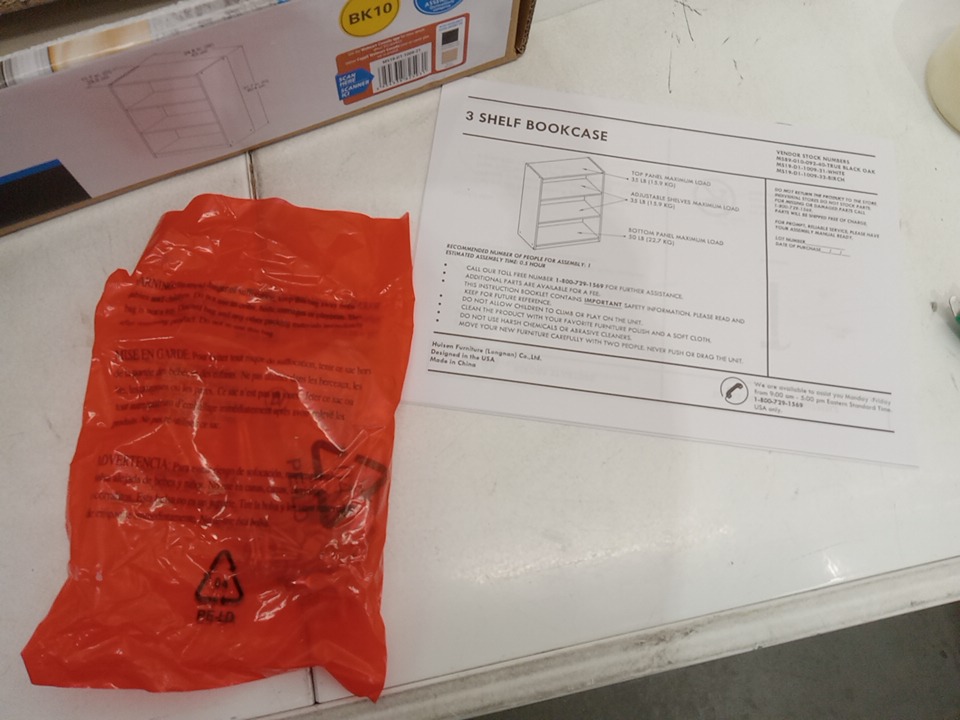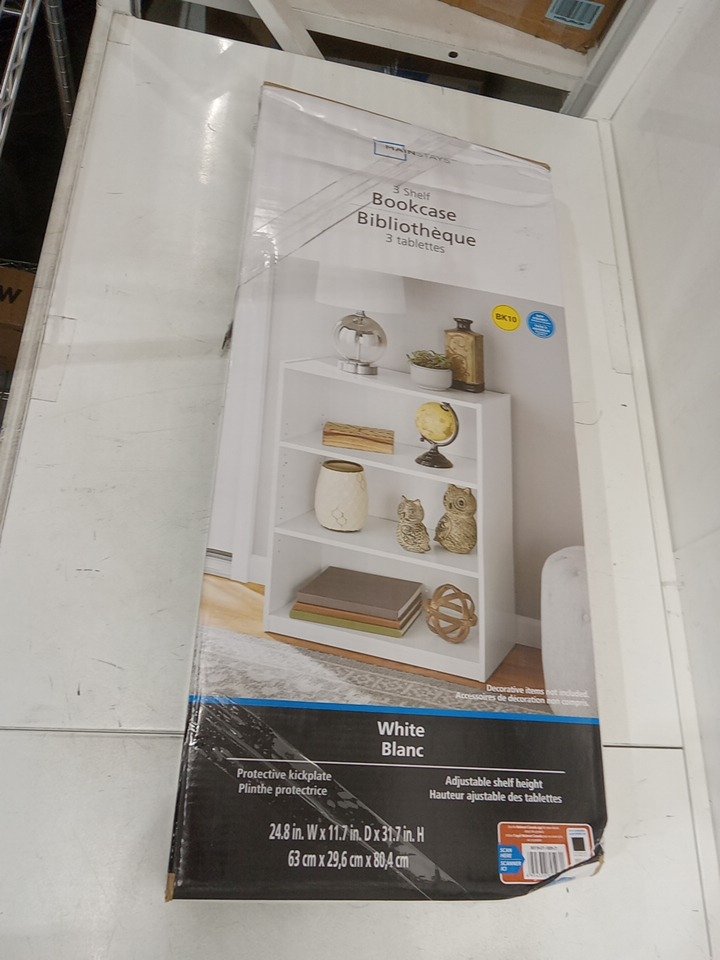 Mainstays 3-Shelf Bookcase with 2 Adjustable Shelves, Durable Wood Composite Construction with Sturdy Frame - White (Model:MS19-D1-1009-21)